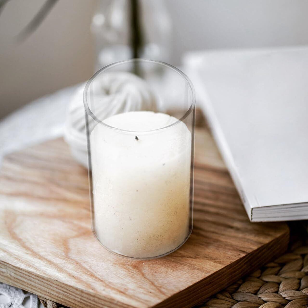 透明耐熱ガラス素材の採用:厳選された透明ガラスを使用し、キャンドルの温かみのある光を美しく透過。透明感のあるシンプルなデザインがどんなインテリアにも自然に馴染みます。