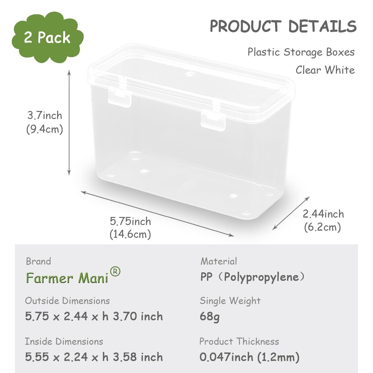 【在庫処分】14.6 x 6.2 x 9.4 cmポリプロピレン長方形ミニ収納ボックス2個、蓋付き、小物や他のDIY工芸アイテムの収納に適している