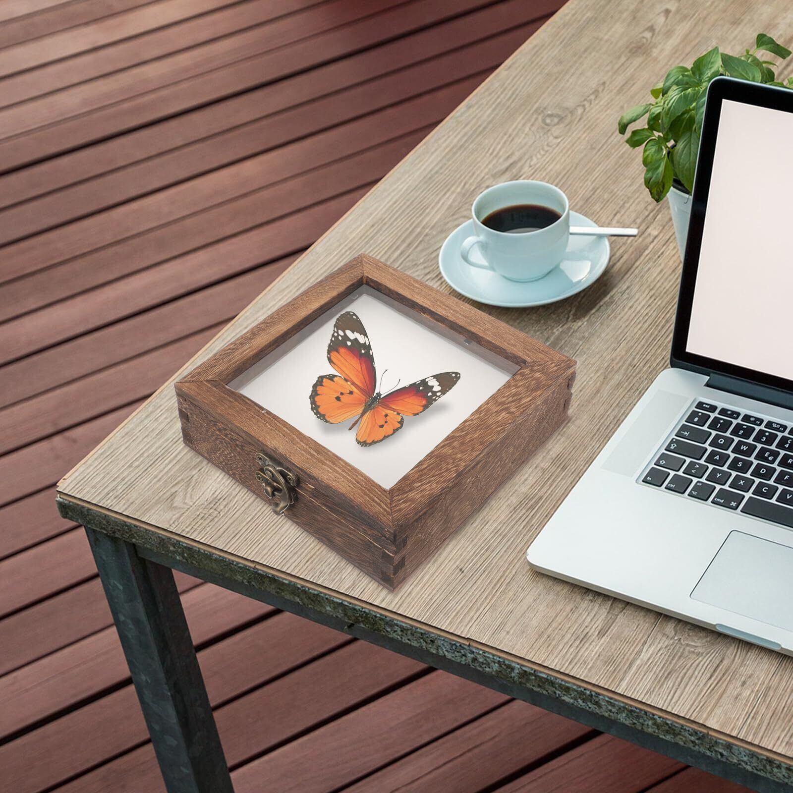 OUNONA 木製標本箱 昆虫標本ケース 小型 透明アクリル蓋付 5.9インチ正方形 ディスプレイボックス ジュエリーやコイン収納用 コレクション向け