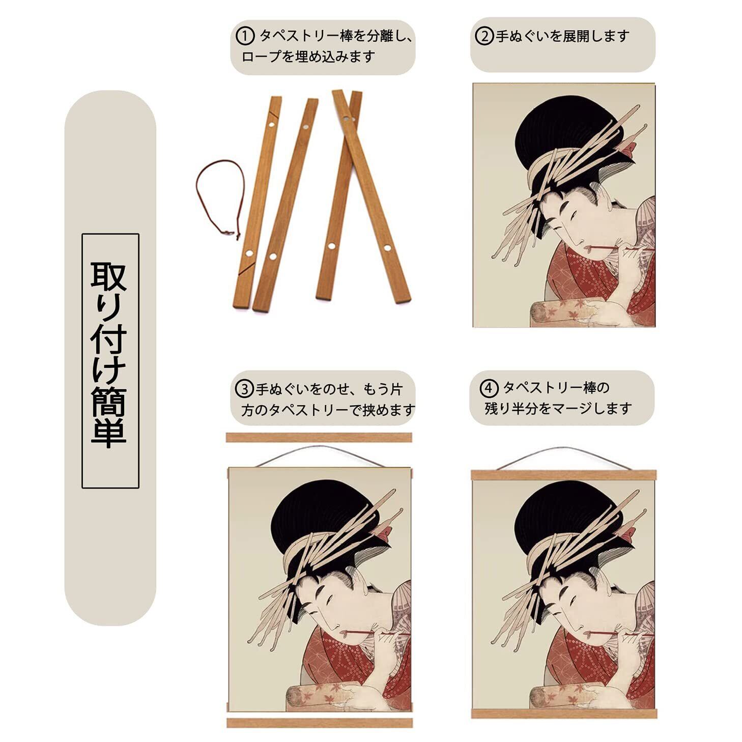 【高品質の素材】タペストリー棒は良質な天然木を作られ、耐久性が良い。人性化設計に従って、磁石は隠れている、視覚効果に影響を与えないです。塗料や接着剤の必要がなく、安全で環境に優しい、自然の美しさを保っています。爽やかな季節に合わせ、清々しい文様の手ぬぐいをこのタペストリー棒で飾るインテリアに、心は晴れやかに!色の豊かな手ぬぐいに変えれば、お部屋に面白さをもたらします!