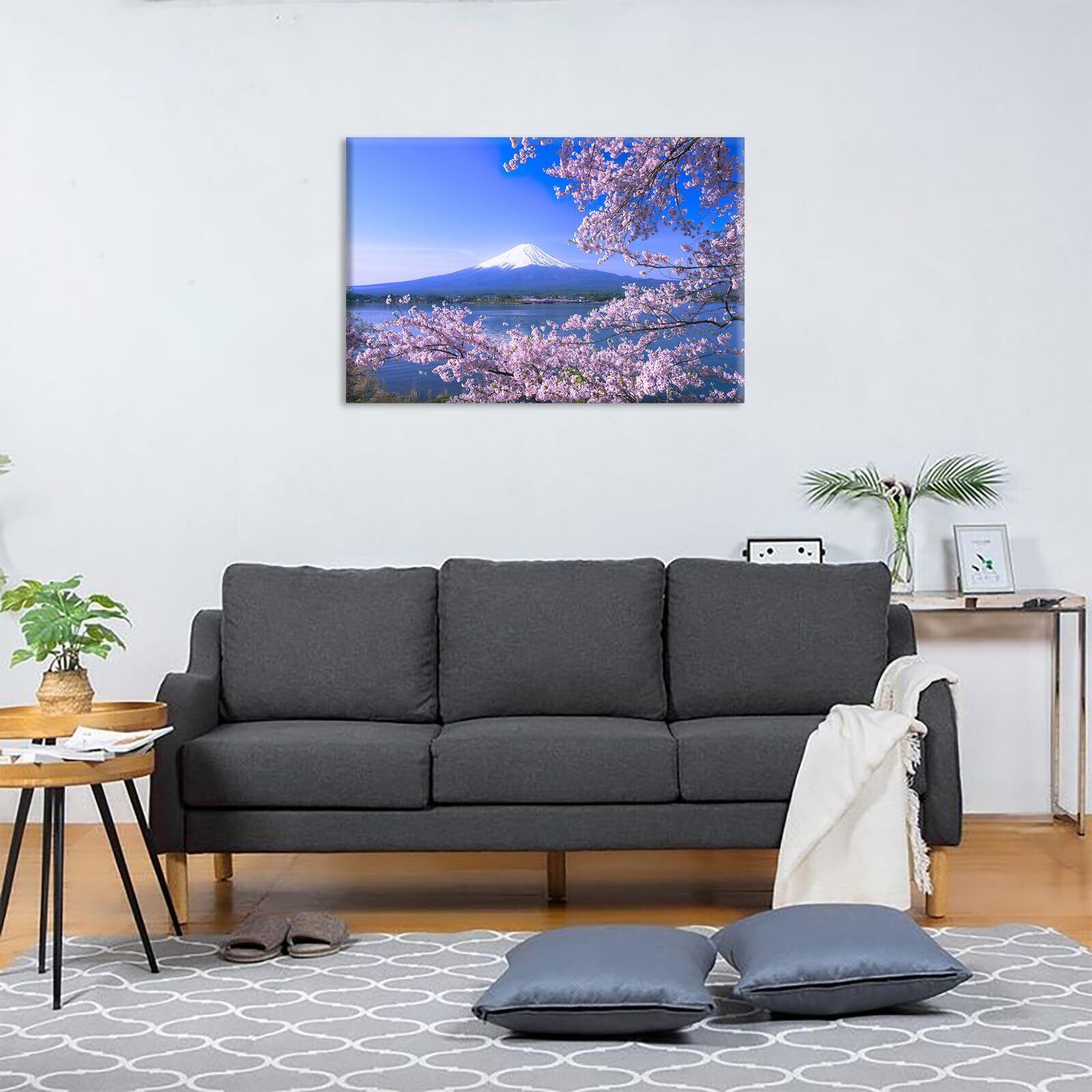 アートパネル 富士山 桜の絵 モダン 風景 植物 おしゃれ 壁掛け 壁飾り 風景画 玄関 縁起の良い装飾画 浴室 写真 完成品 木枠付き (30x40 CM, 富士山のポスター9)