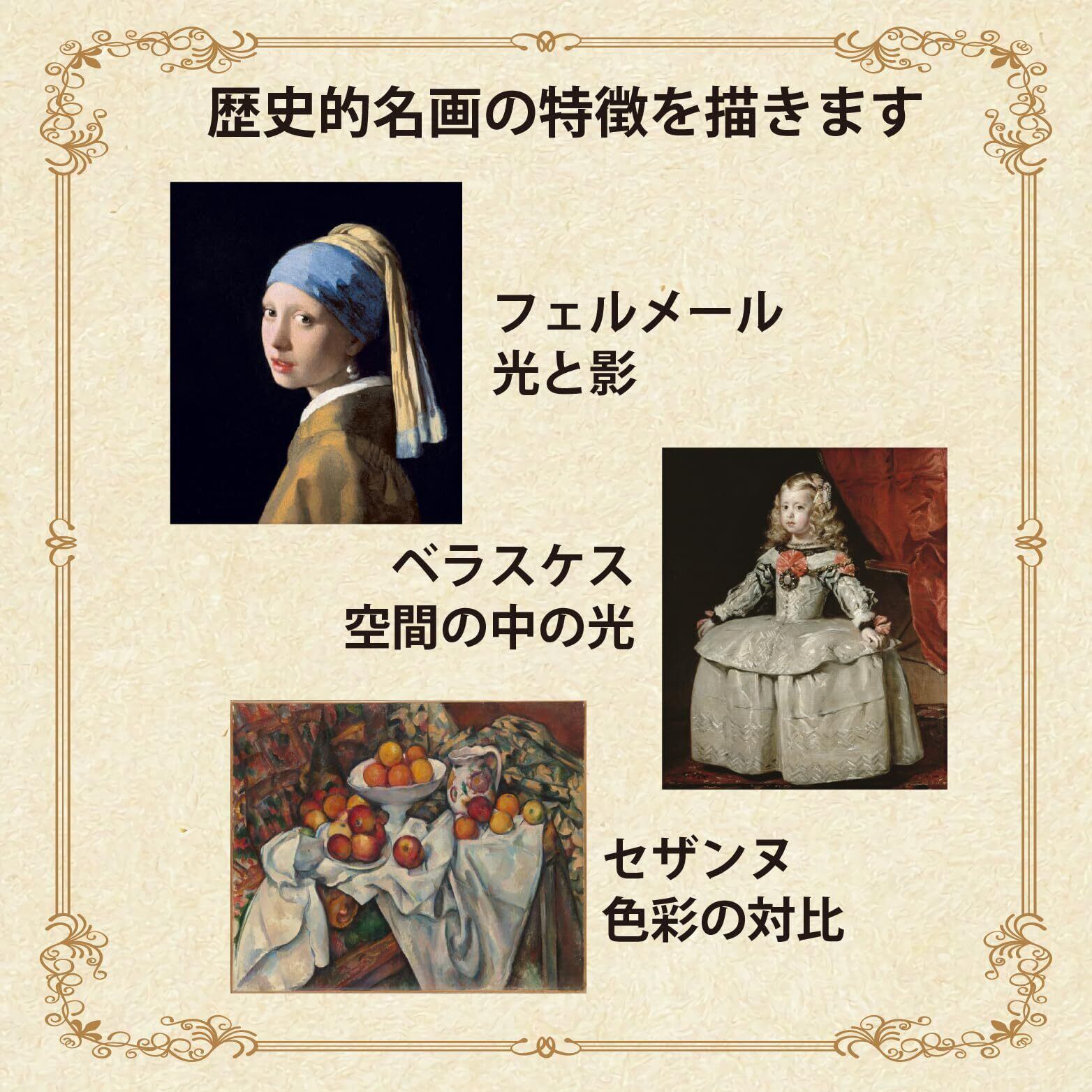 名画と向き合う静かな時間。 塗り絵という形式を借りたアート作品です。 ・このシリーズは、ただ色を塗るのではなく、 一枚の絵と向き合う時間を楽しむためのアートシリーズです。 ・光の方向、構図、色の関係を感じながら仕上げていくことで一枚の名画と向き合います。 ・用紙には額のデザインが印刷されているため、特別な額装を用意しなくても、完成後はそのまま空間に飾ることができます。そして完成した一枚は、見るたびに印象が変わるアートとして残ります。 ・美術館で一枚に立ち止まるように、自分の手で仕上げる一枚。 大人のための、鑑賞する塗り絵です。