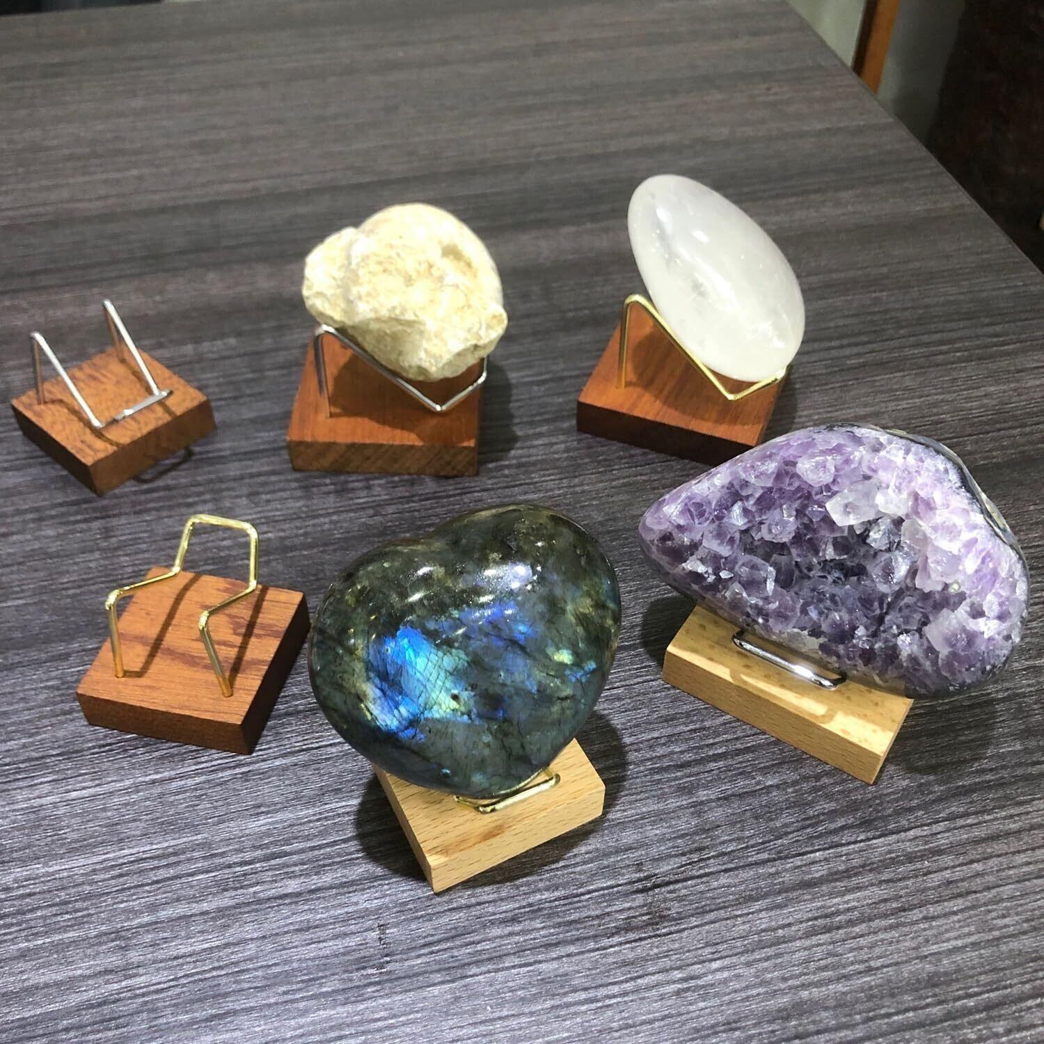 「原石や鉱物のディスプレイに最適」:木製の温かみと金属のアクセントが、鉱物の自然な輝きを引き立て、展示物をより魅力的に見せます。また、しっかりとした安定感があり、サイズに合わせてさまざまな原石や鉱物を美しく整理・保護しながら飾れます。