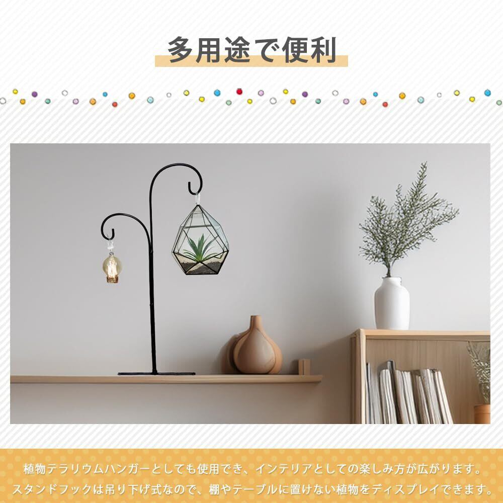 【多用途で便利】 植物テラリウムハンガーとしても使用でき、インテリアとしての楽しみ方が広がります。 スタンドフックは吊り下げ式なので、棚やテーブルに置けない植物をディスプレイできます。 バナナスタンドとしても活躍し、フルーツを美しく収納することができます。