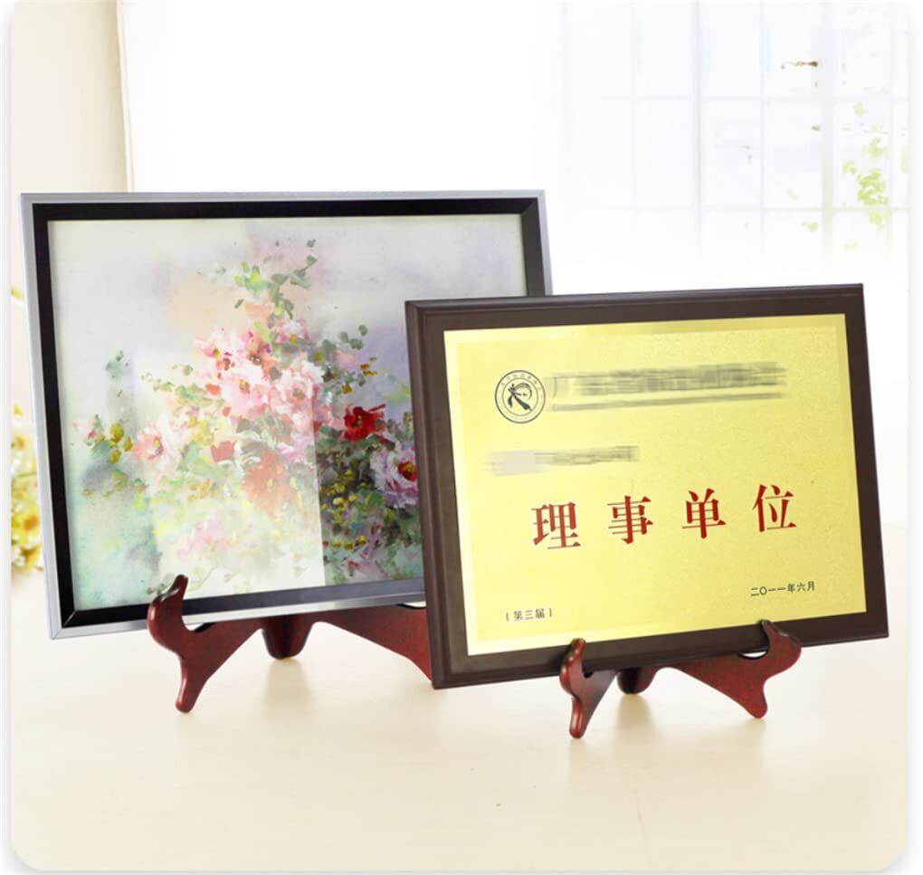 額立て 皿立て 木製 ディスプレイスタンド 額縁 賞状 写真 立て 黒 赤 インテリア用 高20.8cm (赤)