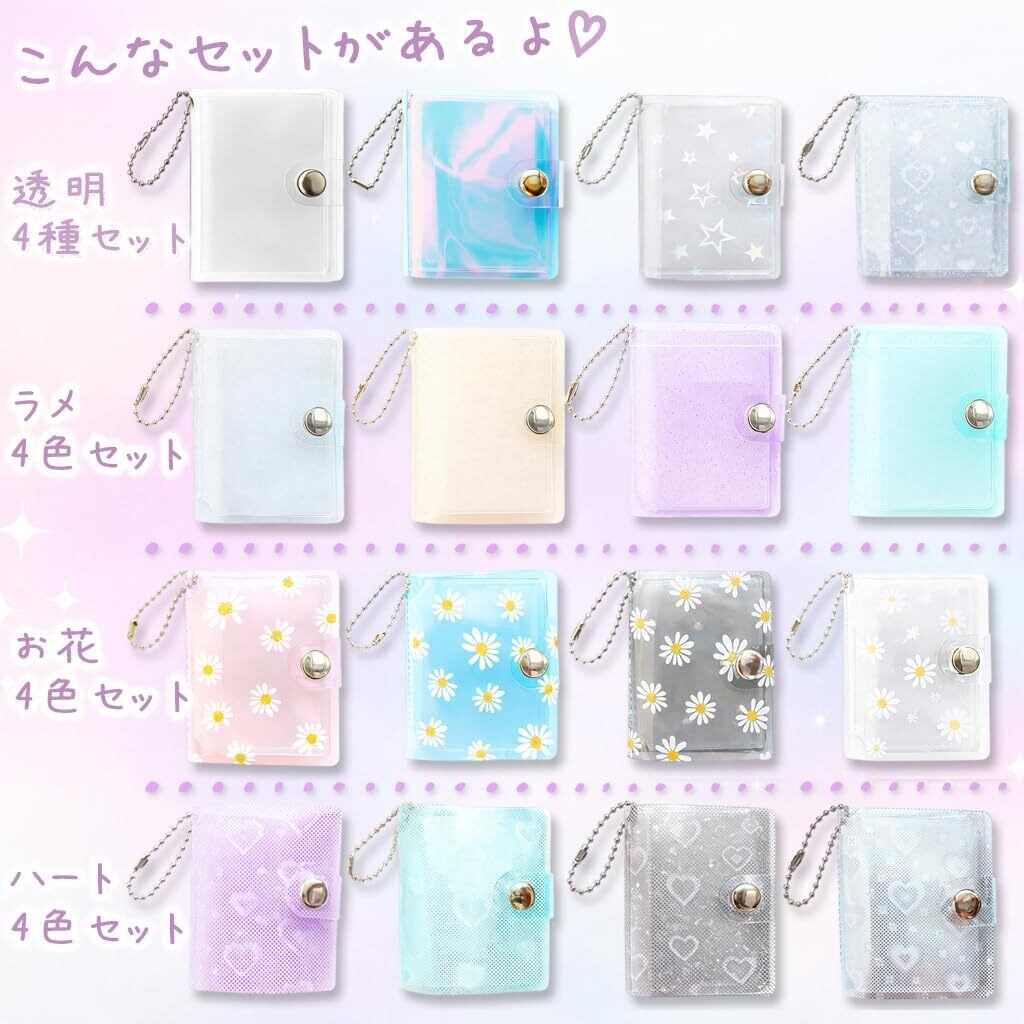 AbonAbon 透明 ミニ フォトアルバム シール帳 ボールチェーン キーホルダー 【4個セット】 女の子 小学生 星柄 ハート柄 (透明4種セット)