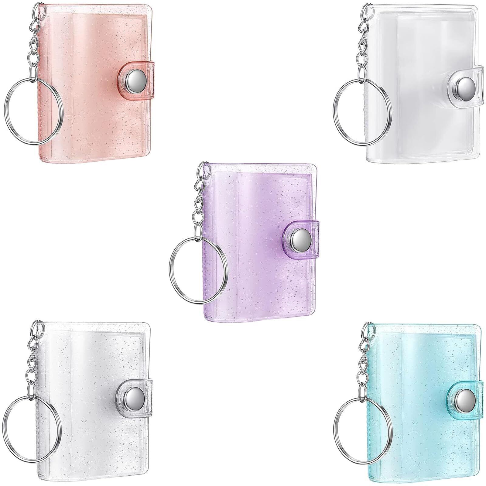 [benkyue] ミニフォトアルバムキーホルダー 5個セット ポケット バインダー 20枚 2インチ 透明 バッグチャーム ミニフォトアルバム 持ち運び便利 装飾品 写真収納 小型