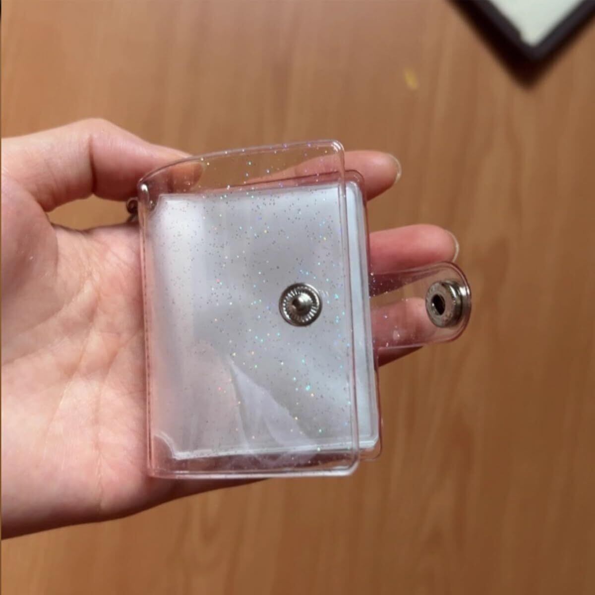 【スナップボタン式】透明ポケットの横から写真を入れてスナップで留めるので、写真が落ちる心配がありません。