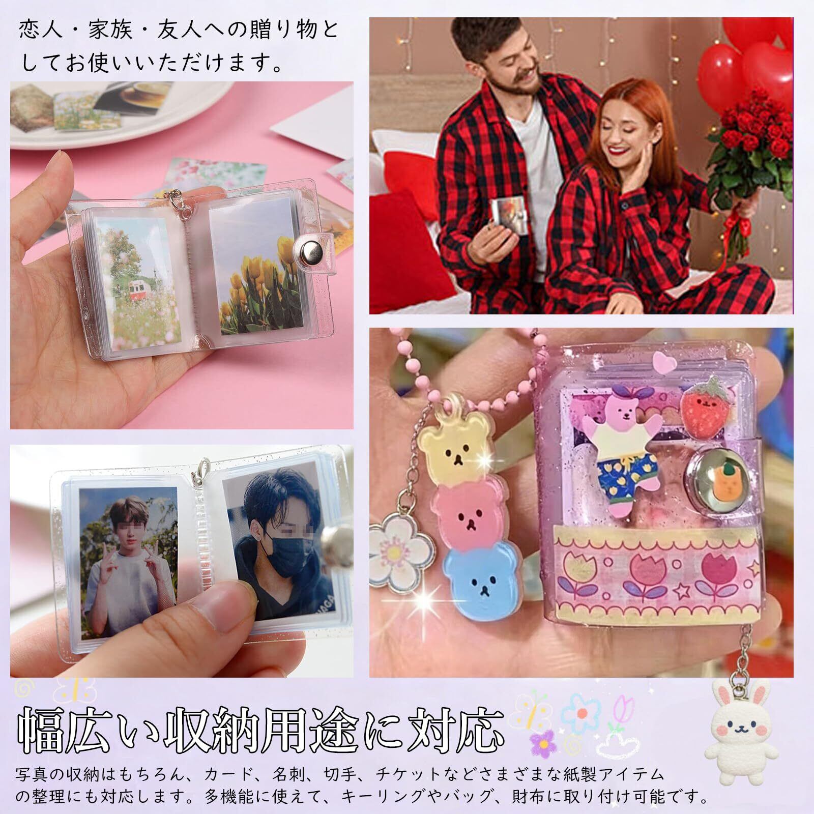 【新春セール】[JINGYOU] ミニアルバムキーホルダー フォトアルバム ミニシール帳 写真収納ホルダー クリアポケット キーチェン ミニフォトブック 透明 2インチ 20枚収納 防水性 防塵 手作りカバン掛け ペンダント用 推し活グッズ ギフト用 結婚式 誕生日用 記念日用 思い出記録用 (透明-5枚入り_2インチ)