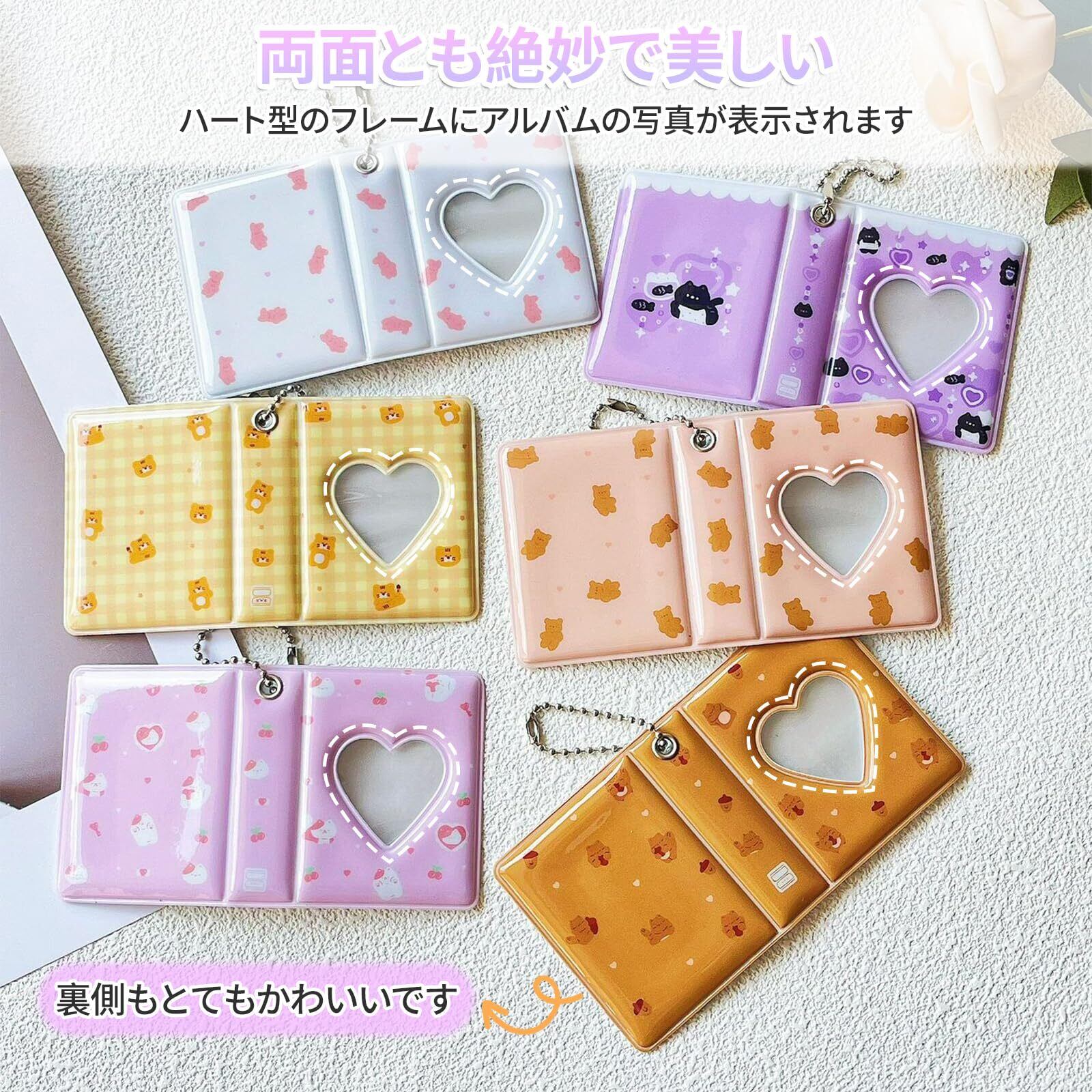 【2022最新】aninako ミニアルバムキーホルダー 3冊 24枚 両面収納 2インチ ミニシール帳 キーホルダー 素色 ハート模様 小さく 透明 軽量 防水 持ち運び便利 写真ストレージ 推し活 バッグドライバー 誕生日 記念日 思い出記録 ラブメモリー 永久保存 プレゼント (A 3パック, 2インチ)
