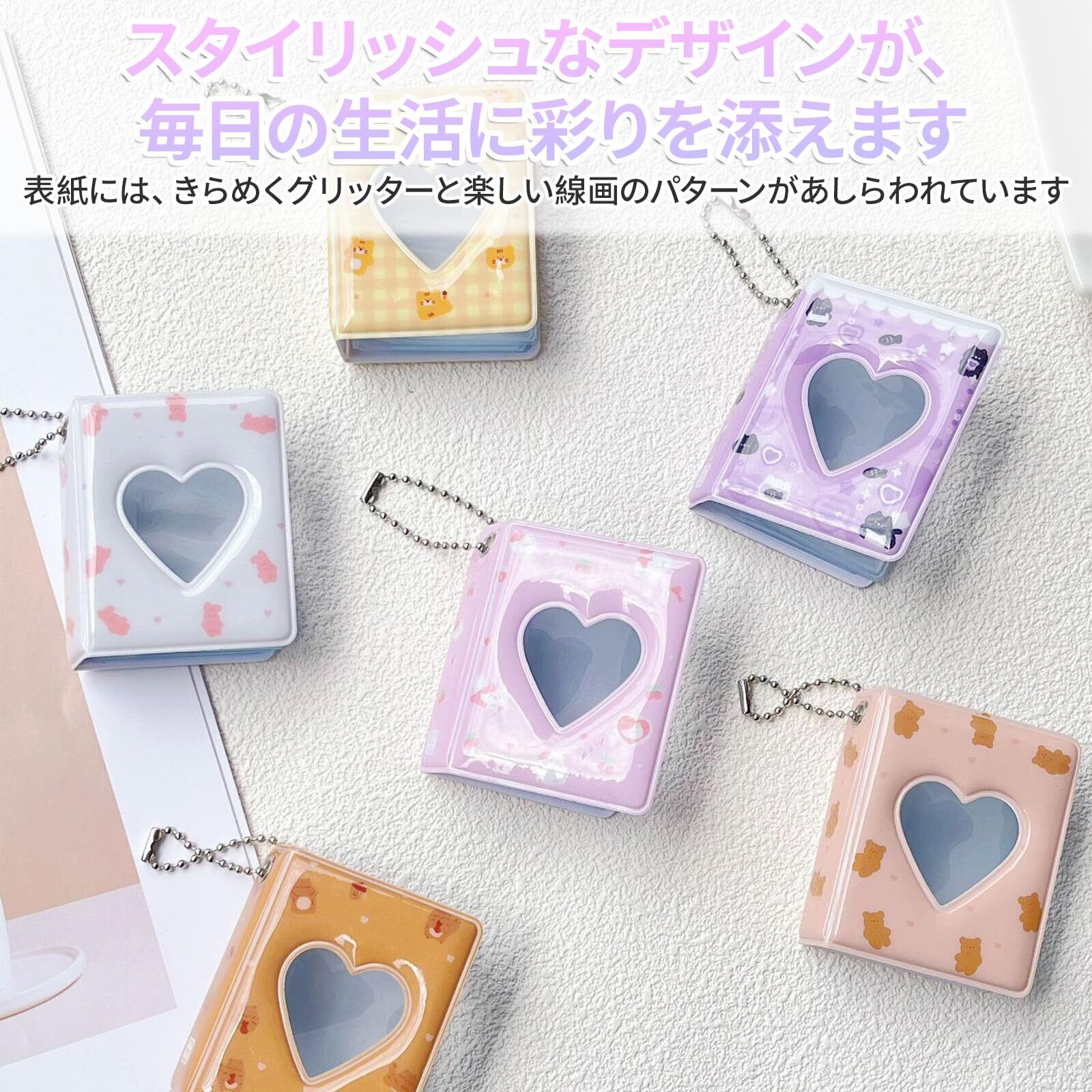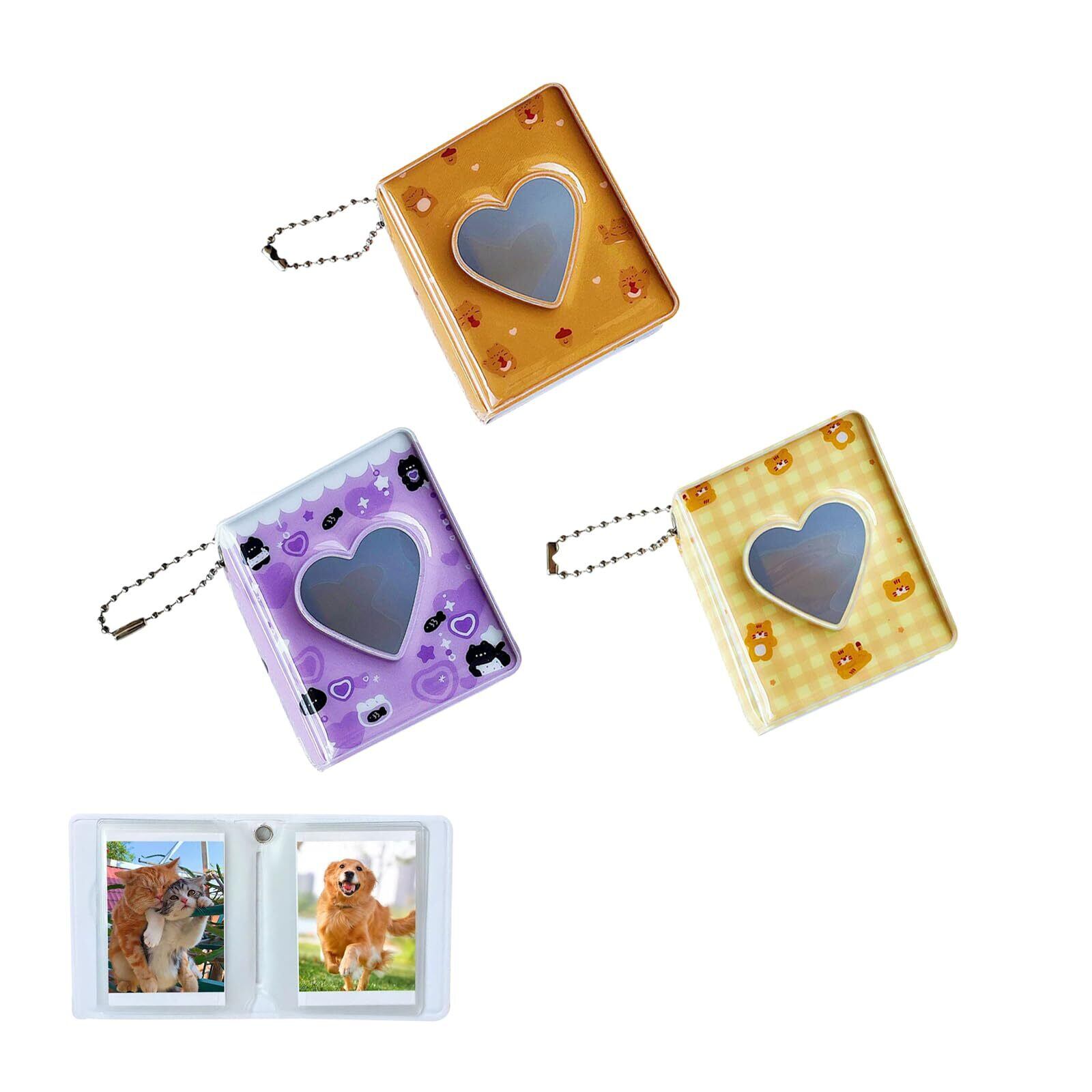 aninako ミニアルバムキーホルダー 3冊 24枚 両面収納 2インチ ミニシール帳 キーホルダー 素色 ハート模様 小さく 透明 軽量 防水 持ち運び便利 写真ストレージ 推し活 バッグドライバー 誕生日 記念日 思い出記録 ラブメモリー 永久保存 プレゼント (A 3パック, 2インチ)