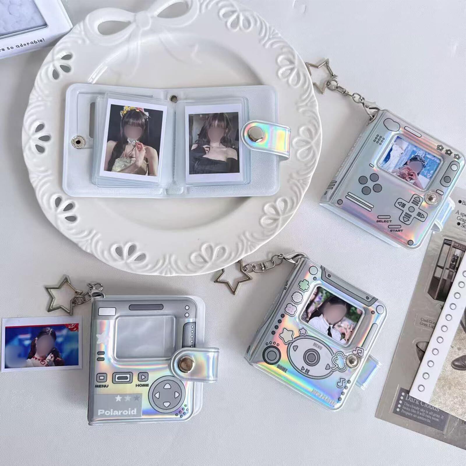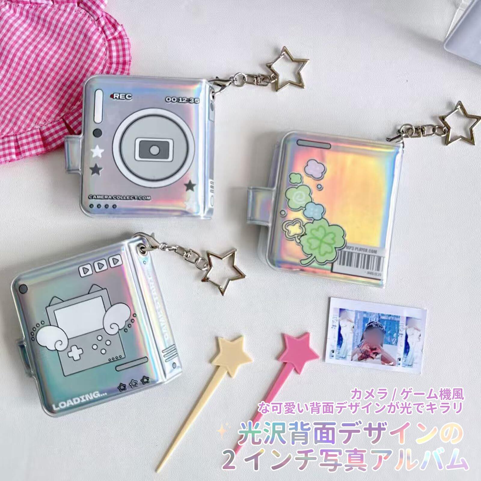 【光沢ゲーム機/カメラ風デザイン!キュートで目を引く】✨光沢仕上げのPVC素材が光に当たると虹色にきらめき、ゲーム機・カメラを模した可愛らしいデザインがファッション性をUP!アイドルID写真を入れるだけで「見た瞬間虜になる」可愛さで、持ち歩くだけで周りの視線を引くアルバムです。