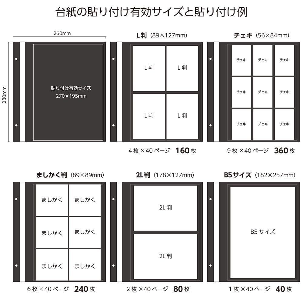 家族の思い出をたっぷり保存できる大容量 黒台紙20枚(40ページ)で、写真をたくさん収納可能。 家族の記録やイベントの思い出を一冊にまとめられます。
