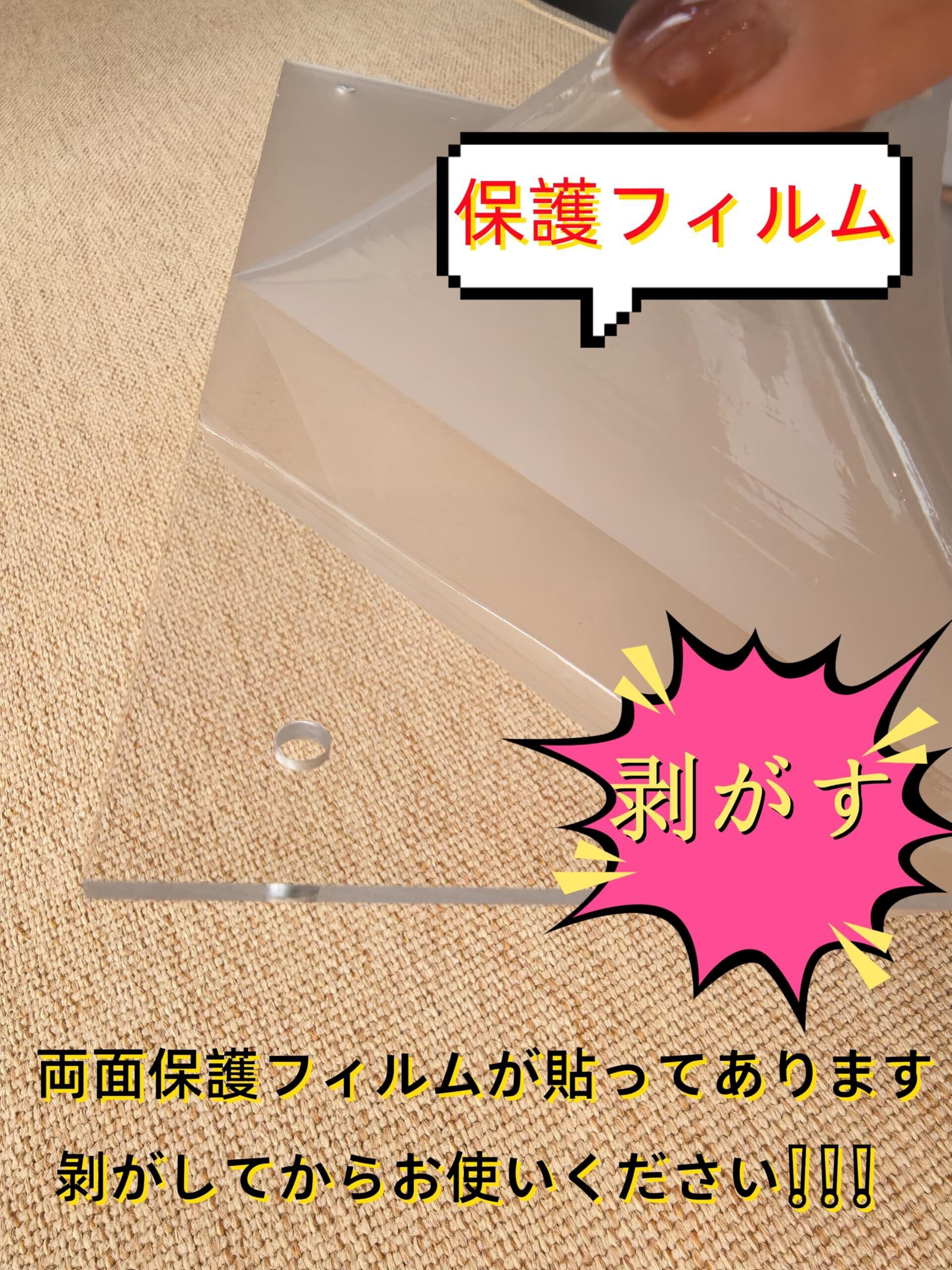 【アクリルフレーム- ご注意】フレームの表面には傷つき防止フィルムがついていますので、剥がしてから利用してください。