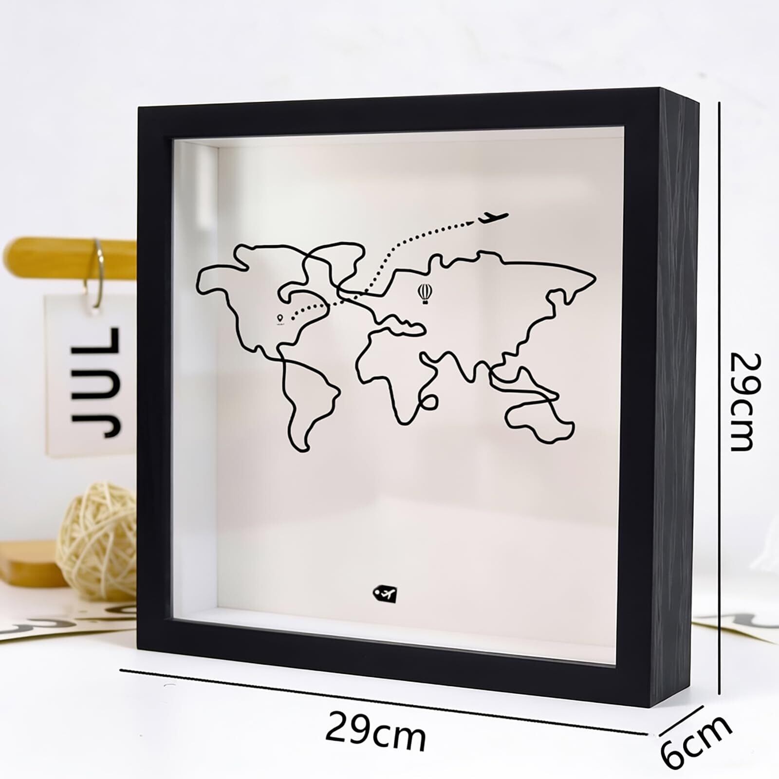 思い出の立体保存デザイン:通常のフォトフレームとは異なり、内部には厚み約3cmもあるボックス形状です。上部に開口部があり、チケットを簡単に挿入できます。チケットやパスポート、小さなお土産などを重ねたり立てかけたり、立体的に配置することで、平面では表現できない臨場感と物語性を生み出します。