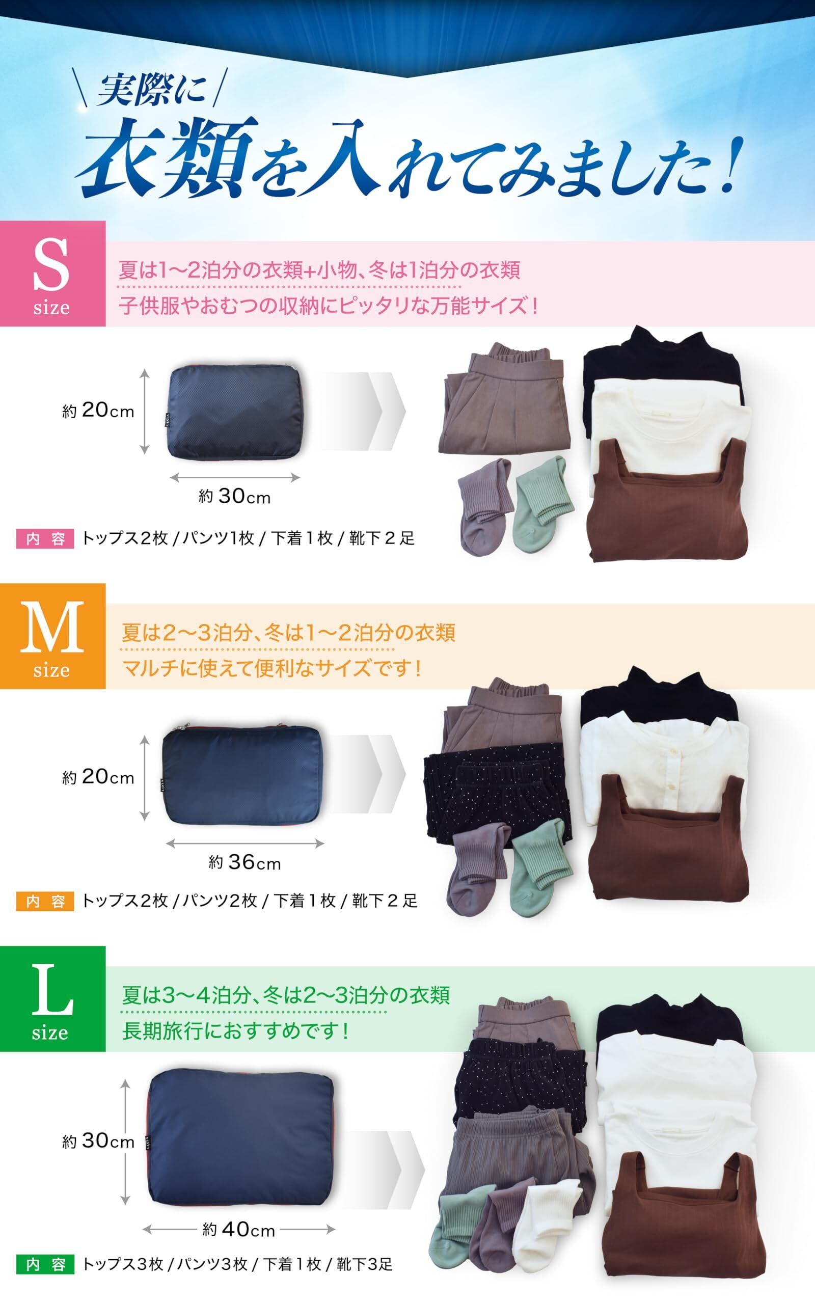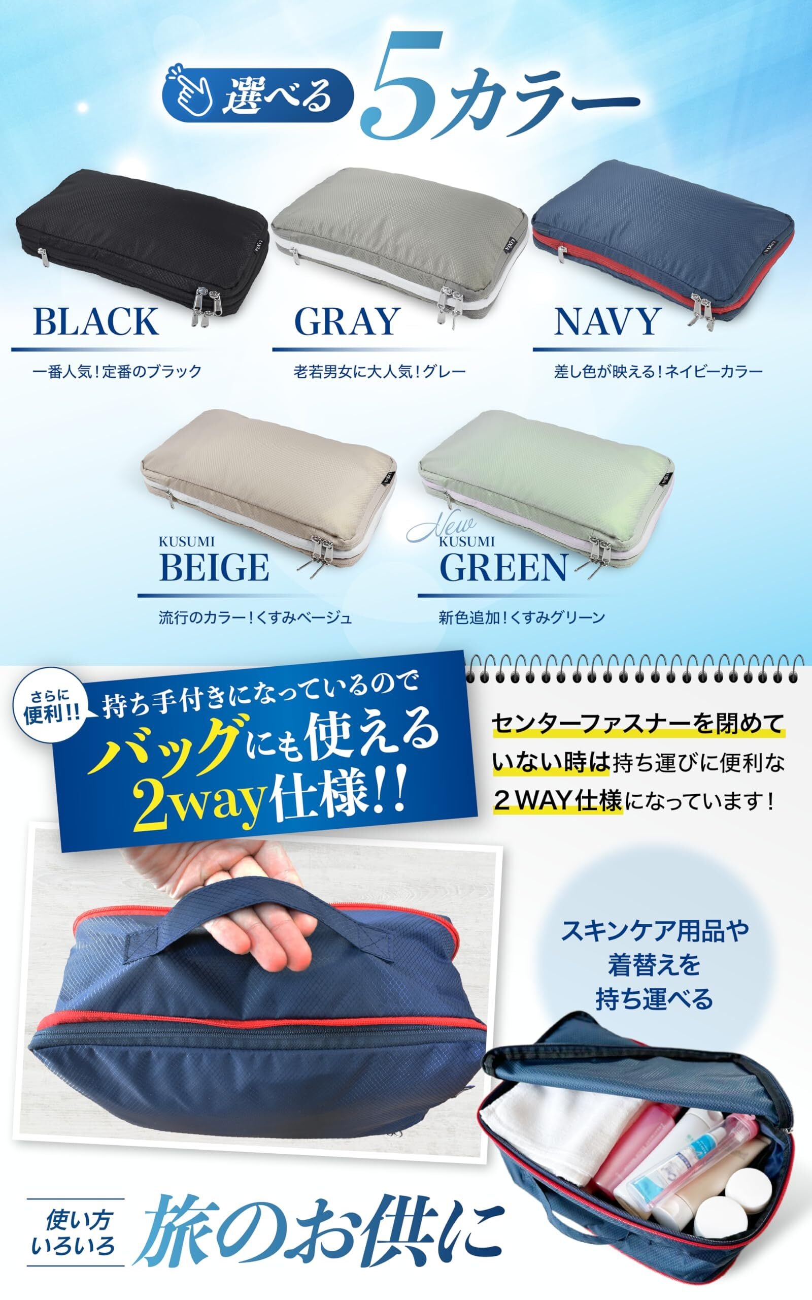 LIXIA 旅行用圧縮袋 YKK 圧縮袋 旅行 2Way じゃらん掲載 スペース節約 ダブルファスナー トラベルポーチ (M, ネイビー)