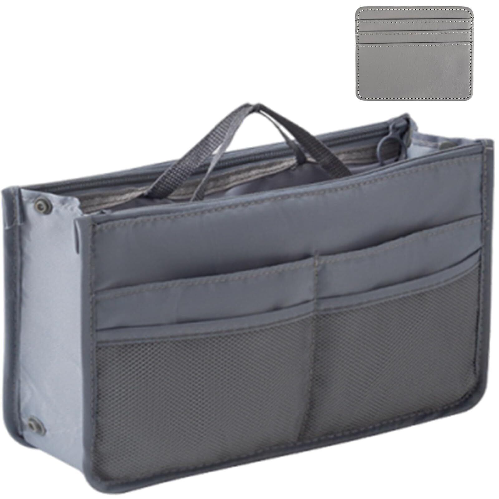 Senteria バッグインバッグ 軽量 自立 インナーバッグ バックインバック トートバッグ用 ファスナー カードホルダー付き 持ち手つき 大容量 薄型 小さめ 丈夫 防水 仕切り 収納 整理 収納バッグ ギフト贈り物 職人 通勤 ビジネス 旅行 メンズ レディース 橫長27×高さ16×幅9cm グレー