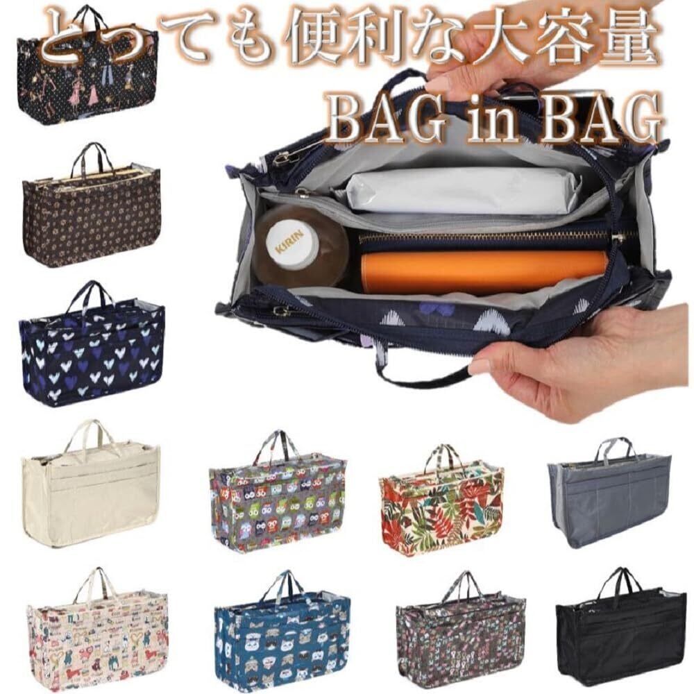 【在庫処分】バッグインバッグ インナーバッグ 自立 安心 ファスナー 付 防水 ポーチ ちょっと大きめ 収納力 旅行 仕分け 整理 おしゃれ 可愛い 持ち手つき