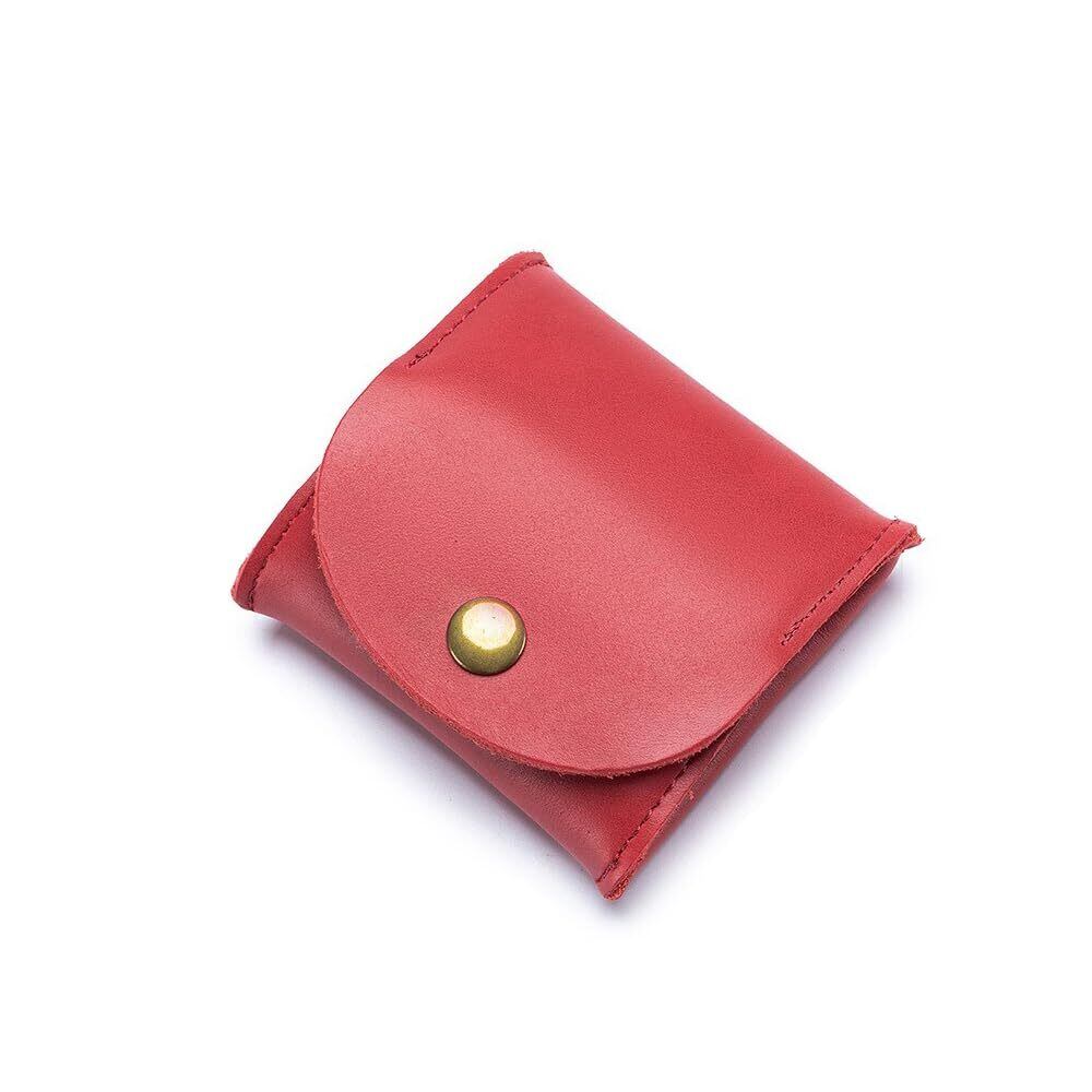 【特価商品】ミニ財布 小銭入れ ボックス型 コインケース コンパクト コイン収納 本革 薄型 ボタン式 小銭財布 男女兼用 (レッド)