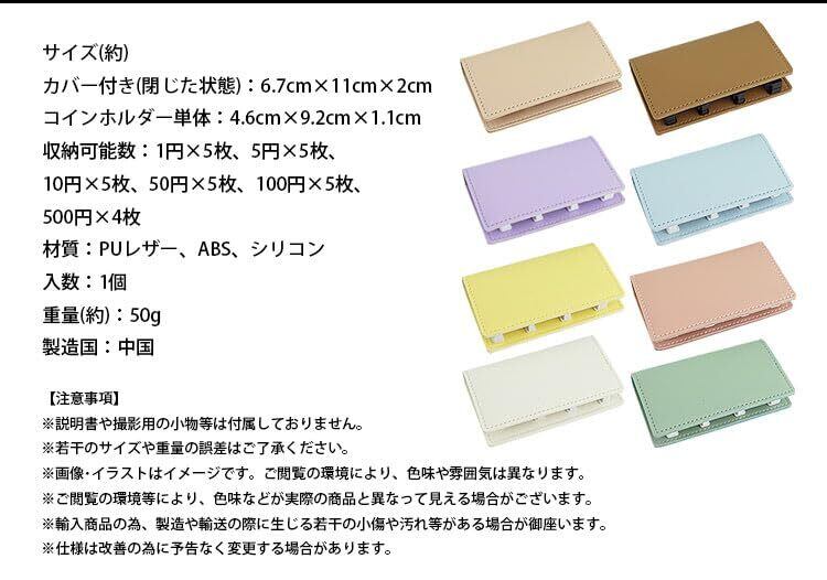 収納可能数:1円×5枚、5円×5枚、10円×5枚、50円×5枚、100円×5枚、500円×4枚