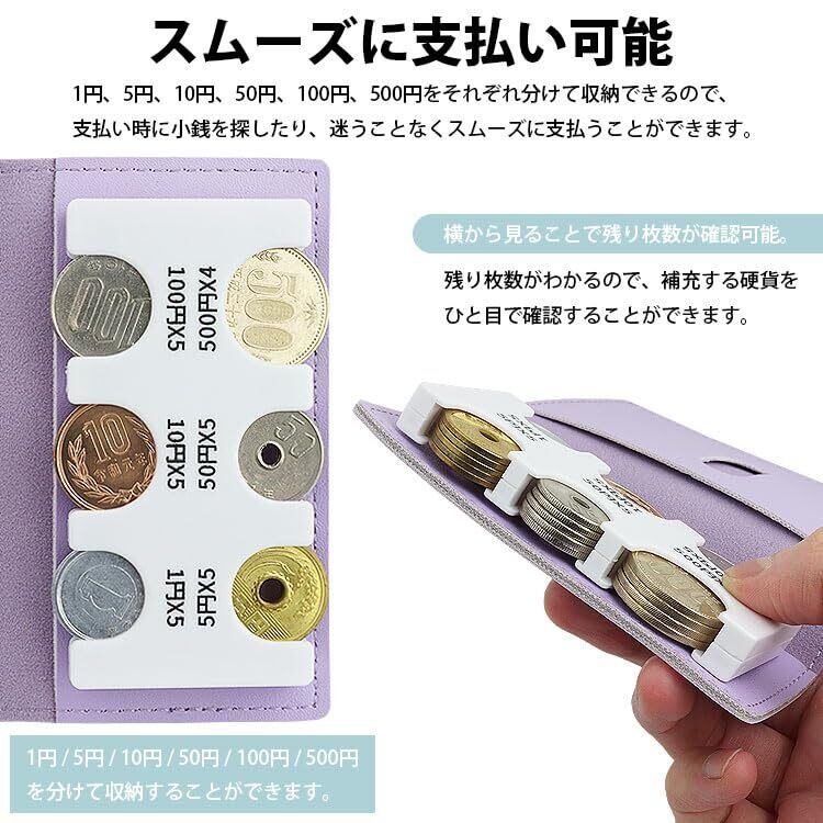 1円、5円、10円、50円、100円、500円をそれぞれ分けて収納できるので、支払い時に小銭を探したり、迷うことなくスムーズに支払うことができます。