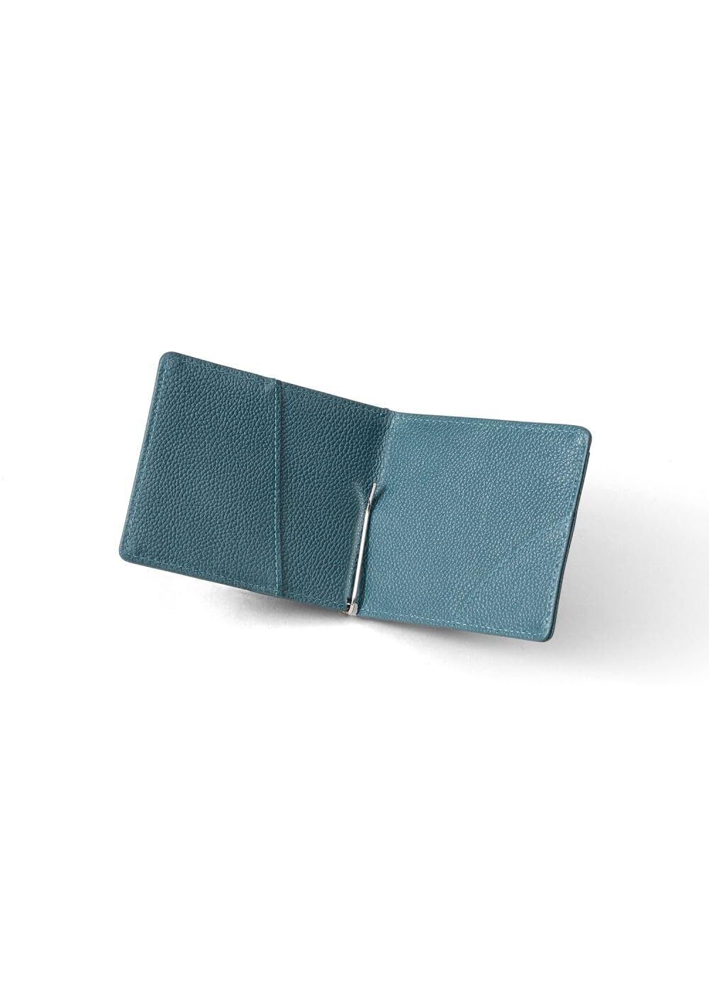 マネークリップ 撥水オリジナルレザー 牛本革 男女兼用 小銭入れ付き 2ポケット (ティールブルー)
