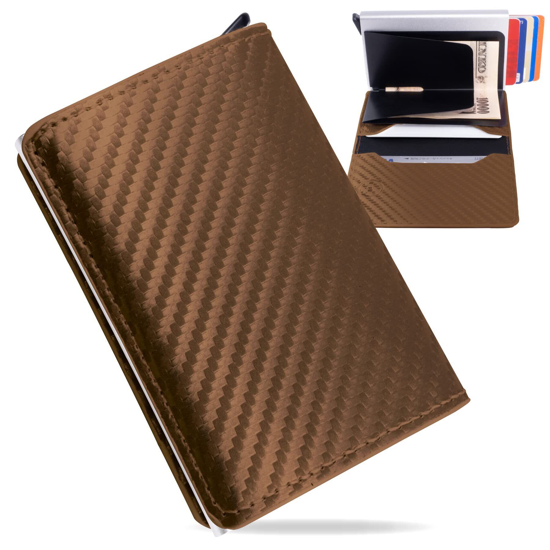 磁気防止クレカケース 領収書 マネークリップ パスケース 軽量 card case 男性 女性 7枚 ブラウン 茶