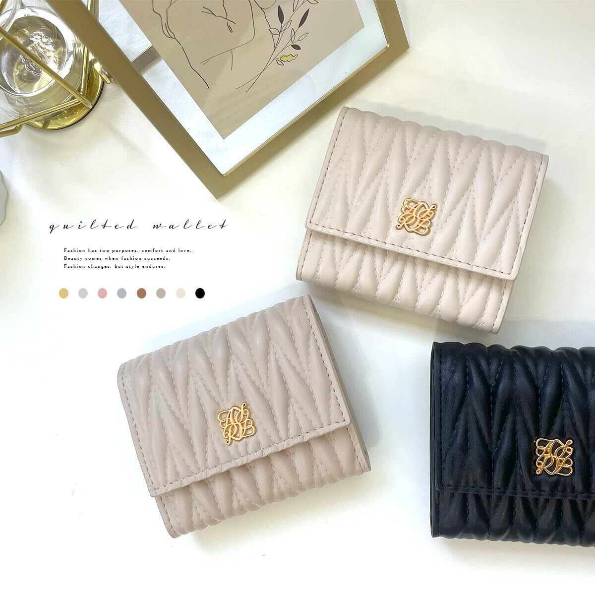 ミニ財布 コンパクト 小銭入れ 大容量 三つ折り 小さい 軽い コインケース くすみカラー キルティング レディース (アイボリー)
