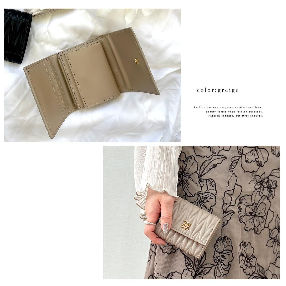 コンパクトなデザイン: 小さくてコンパクトなサイズで、持ち運びに便利な三つ折り財布です。L字型に開くので三つ折り財布にありがちな「お札の折れ曲がり」を気にせず収納することが可能です