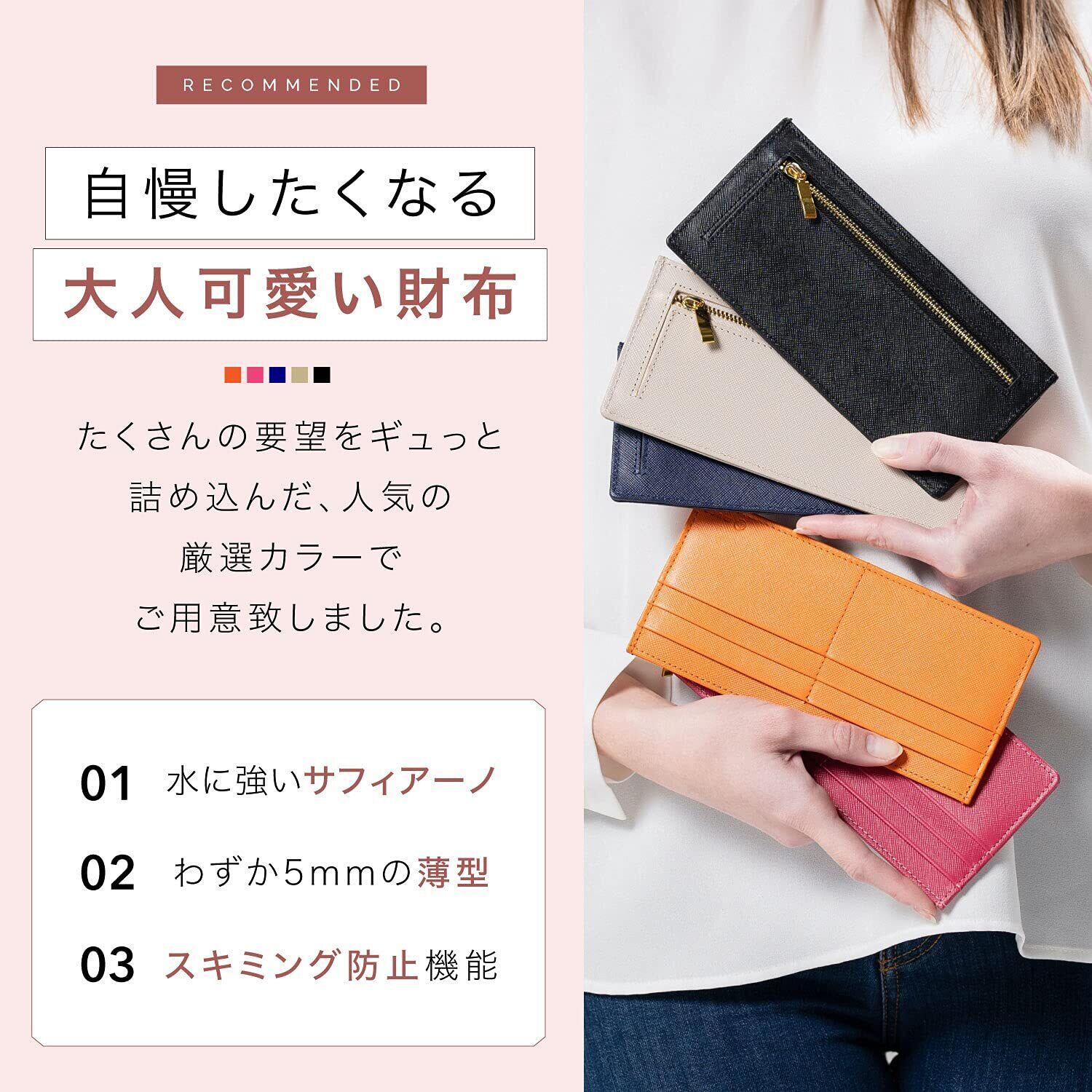 【 牛本革使用!サフィアーノレザーの薄型長財布 】上質な高級感がある高品質牛本革を厳選した薄型長財布。丈夫なだけでなく、手触りも抜群。有名ブランドでも使用される女性らしい洗練されたデザインなので、光沢感のあるこだわり牛本革を楽しめます。また、撥水性・耐久性に優れ、傷や汚れに強いのも魅力。