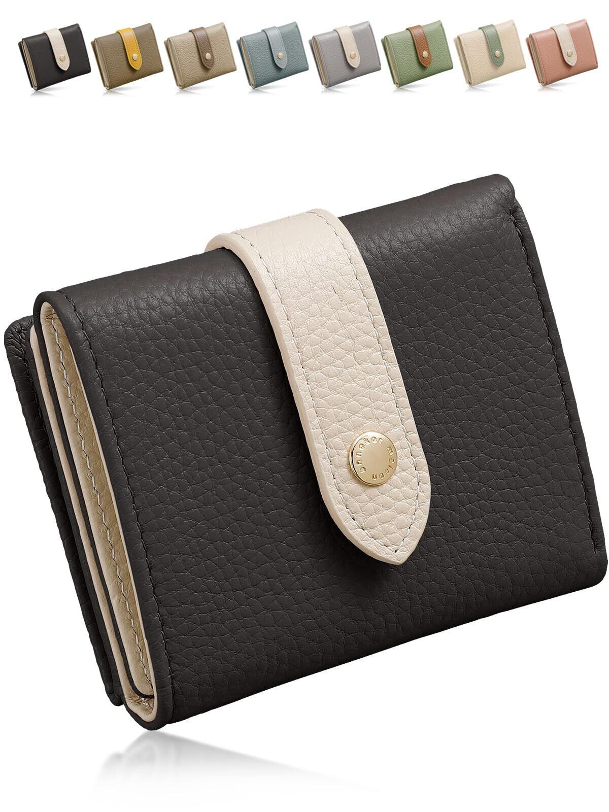 ミニ財布 本革 三つ折り 財布 レディース ミニウォレット 小さい スキミング防止 折り畳み 軽量 コンパクト ギフト プレゼント (ブラック×アイボリー)