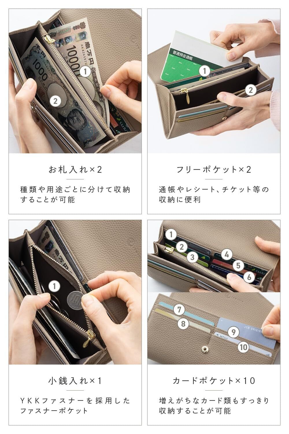 長財布 レディース 財布 大容量 RFID スキミング 磁気防止 牛革 YKKファスナー カード 10枚収納(ベージュ)