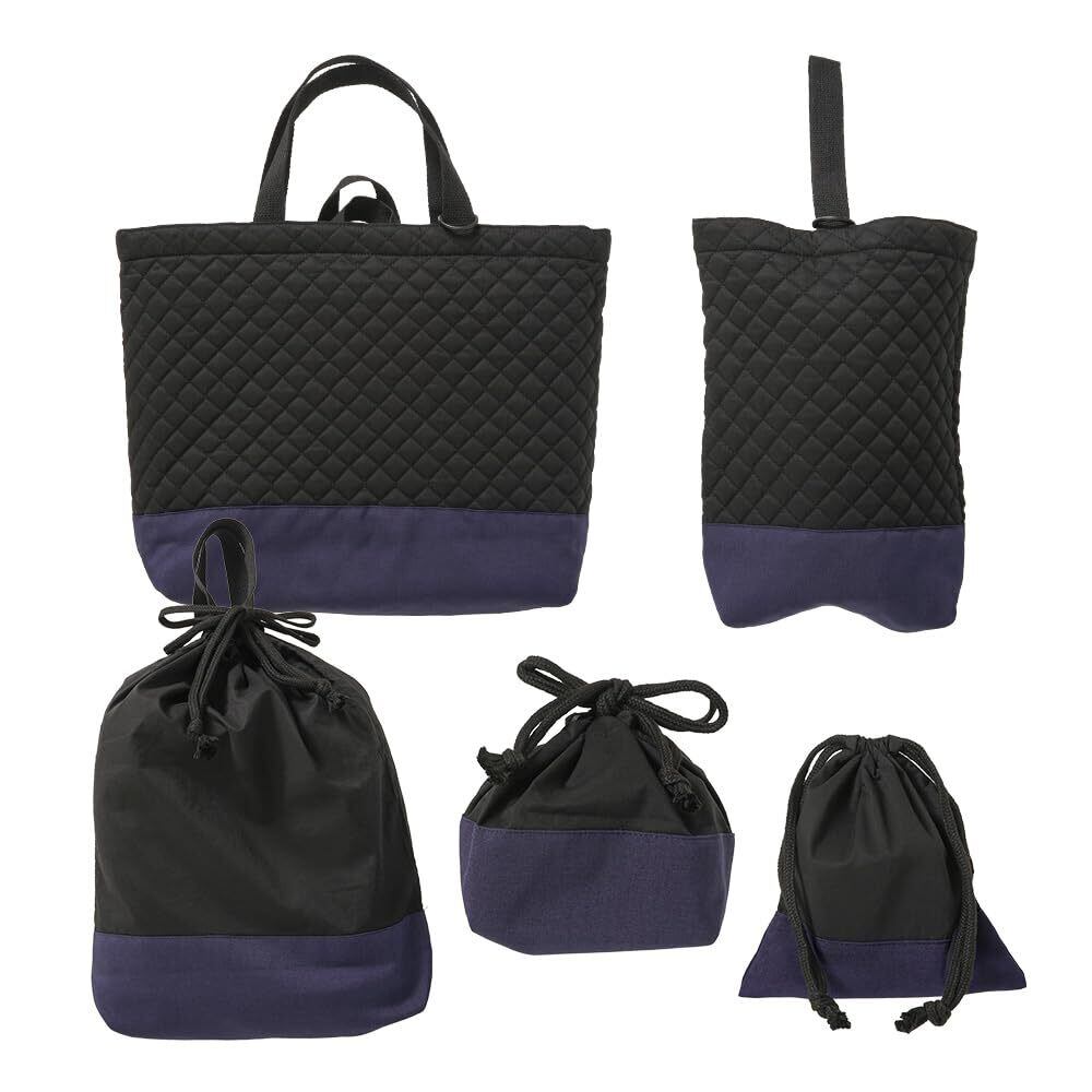 【2022最新】アンジュスマイル 入園 入学 巾着袋 5点セット ブラック×ネイビー バッグ レッスンバッグ スクールバッグ スクバ 布 布製 お弁当袋 体操袋 手提げ袋 上履き袋 小学生 保育園 入学 ピアノ