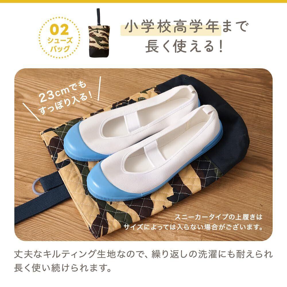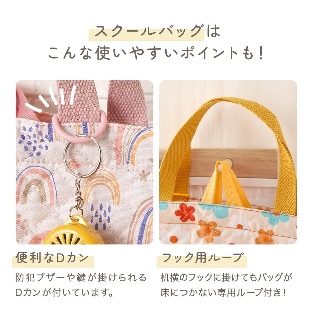 【スクールバッグ】 通園・通学のスクールバックとして、習い事用のレッスンバックとして 11cm のマチがあるので厚手の荷物もすっぽり入ります。 防犯ブザーやお名前タグ、定期入れなどが付けられるDカン付き! バックが床につかない専用ループ付き! 【シューズバック】 丈夫なキルティング生地で高学年まで長く使える!23㎝の上履きもすっぽり入る! 【体操服袋】 長そで長ズボンでも入る大きめサイズ! 【お弁当袋】 14㎝マチ付き巾着袋! 【コップ袋】 持ち手付きコップがすっきり入る巾着袋! 小物入れにも便利なサイズ!丈夫なキルティング生地で長く使える! スクールバックはバックが床につかない専用ループ付き! 【スクールバッグ】 通園・通学のスクールバックとして、習い事用のレッスンバックとして 11cm のマチがあるので厚手の荷物もすっぽり入ります。 防犯ブザーやお名前タグ、定期入れなどが付けられるDカン付き! バックが床につかない専用ループ付き!