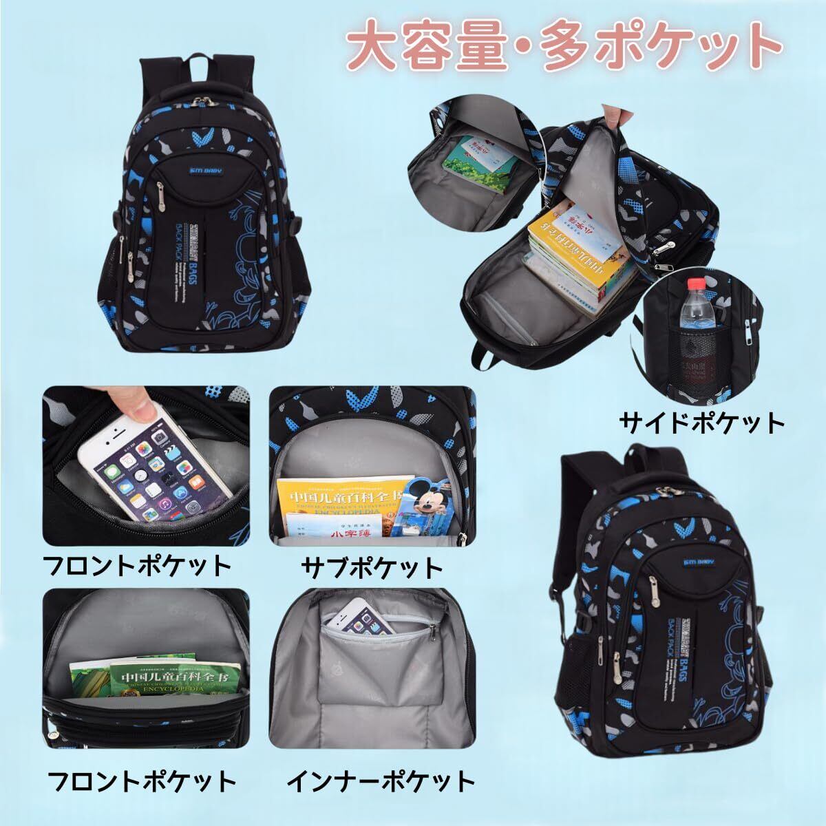 学生リュック リュックサック バックパック デイパック 男の子 男 通学 遠足 アウトドア 小学生 中学生 大容量 防水