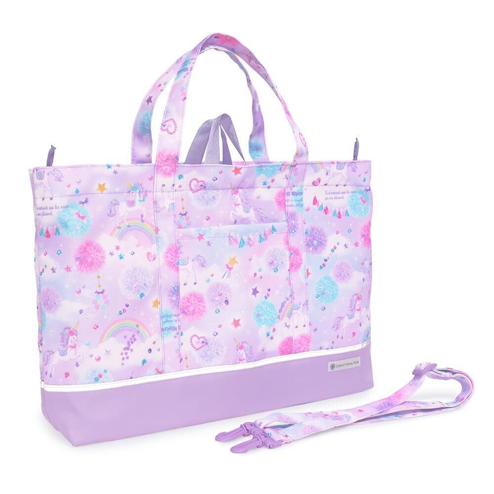 【2022最新】COLORFUL CANDY STYLE レッスンバッグ マチ付きショルダー 撥水軽量 ユニコーンファンタジー はっ水 軽量 汚れにくい シワ防止 大きめ ショルダー 防犯 安全 反射材付き 女の子 NM380600-a