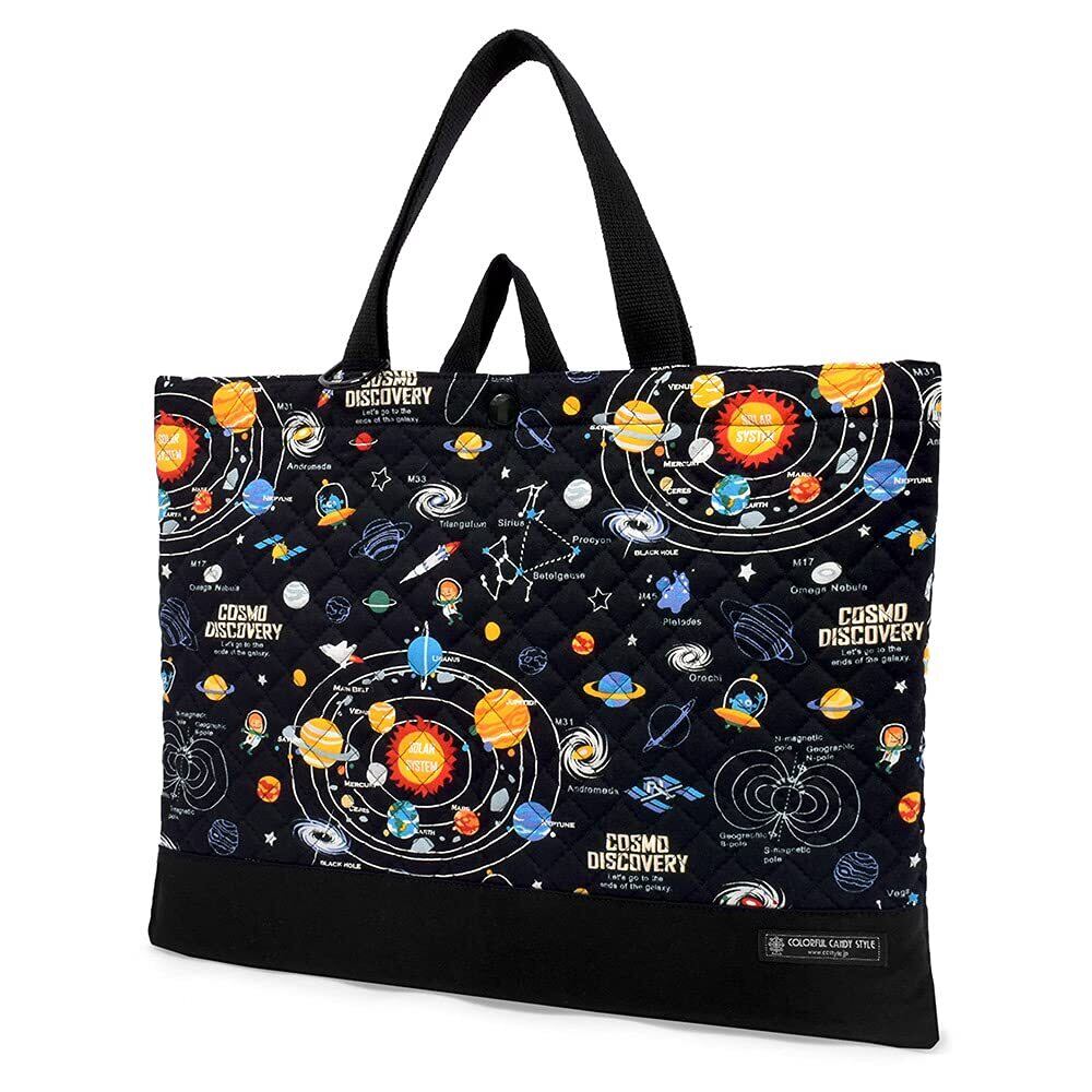 COLORFUL CANDY STYLE レッスンバッグ(キルティング) 絵本袋 手さげ おけいこバッグ 太陽系惑星とコスモプラネタリウム(ブラック) N0239900