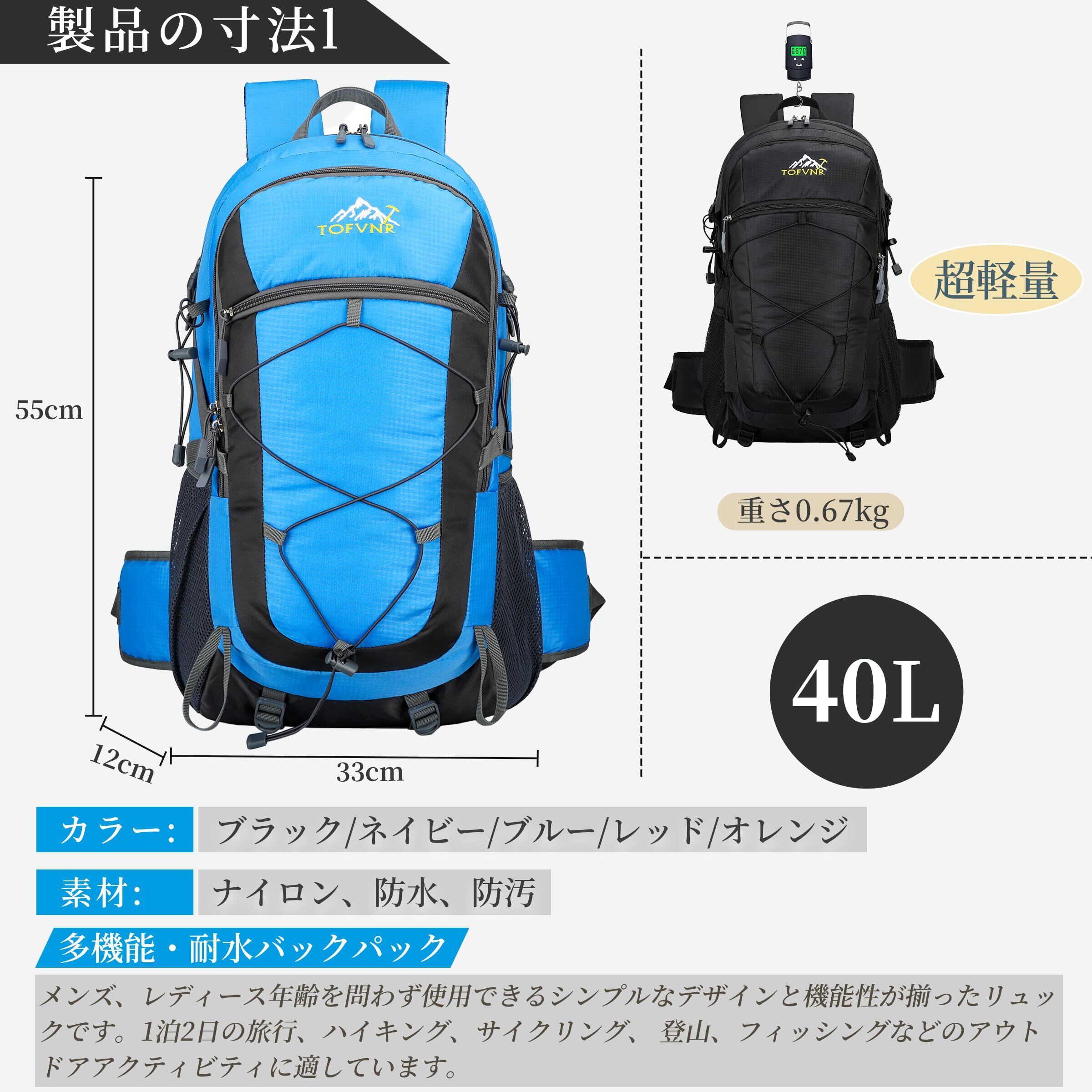 【軽量登山リュック】この軽量で快適なハイキングバックパックは、アウトドアスポーツ愛好家のために設計されています。40Lのアウトドアリュックの重さはわずか0.67KGで、超軽量で持ち運びが簡単です。シワになりにくいので、使用しないときは簡単に収納できます。ショルダーストラップの長さは調節可能で、男性にも女性にも適しています。登山用リュック、ハイキングリュック、防災リュック、キャンプリュック、釣りバッグ、サイクリングバックパック、スポーツバックパックなどとして使用できます。