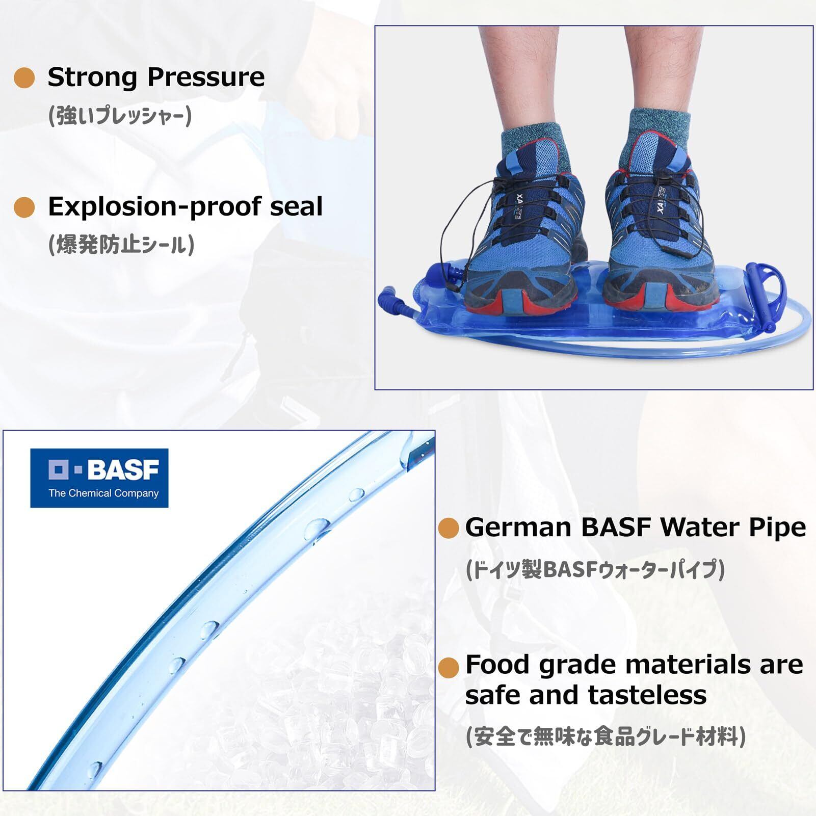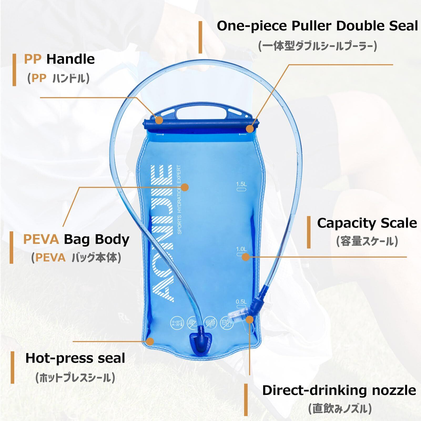 【無臭の素材】ハイドレーションはTPU/PEVA材料を採用しており、BPAフリー、ゴム臭さはありません。使用温度範囲は-20℃~50℃です。牛乳、ビール、フルーツ、ジュースなどは入れないでください。