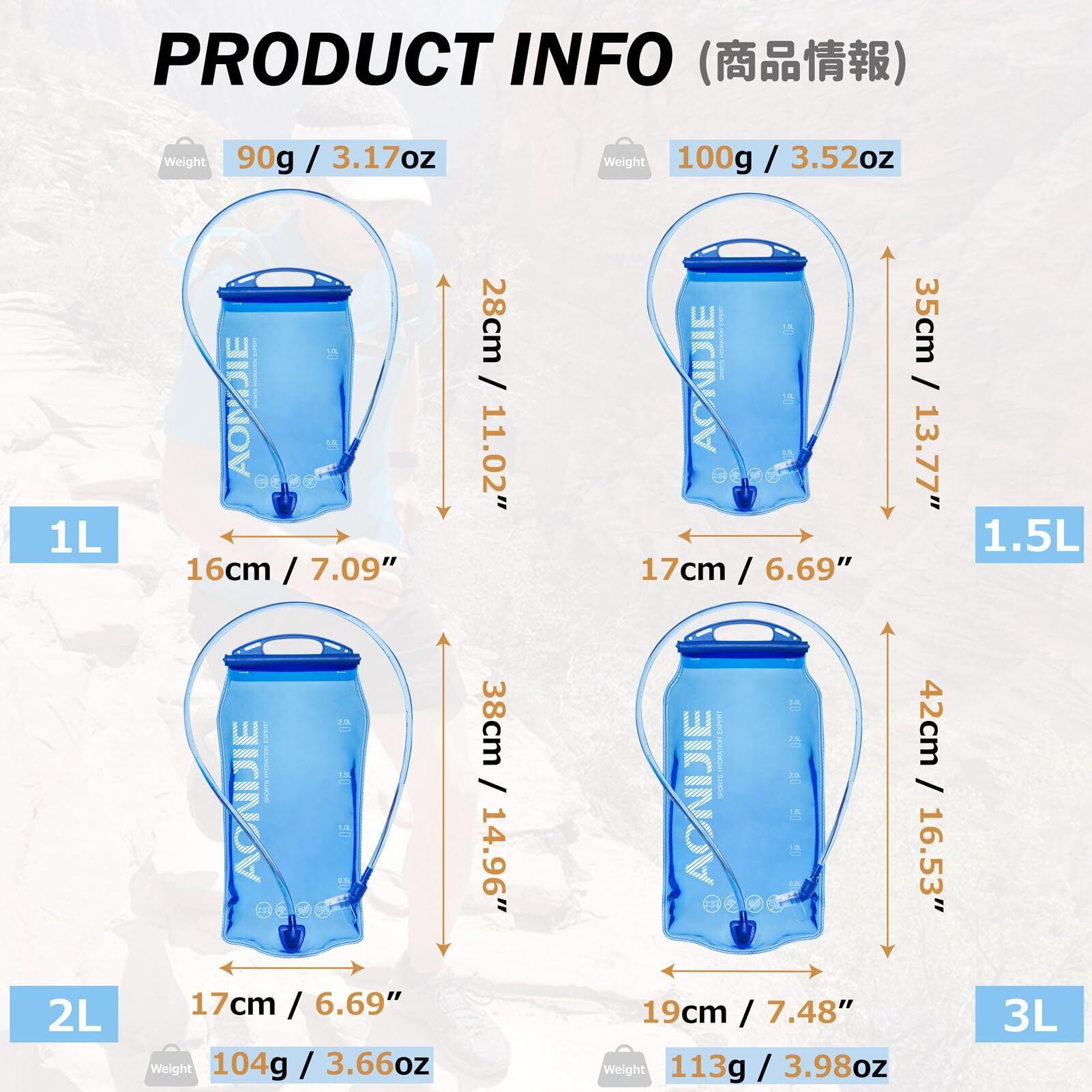 Azarxis ハイドレーション 給水袋 ウォーターキャリー 水分補給 防塵キャップ付き 軽量 全開口式 チューブ ランニング 登山 ハイキング 自転車 トレイル マラソン 1L 1.5L 2L 3L