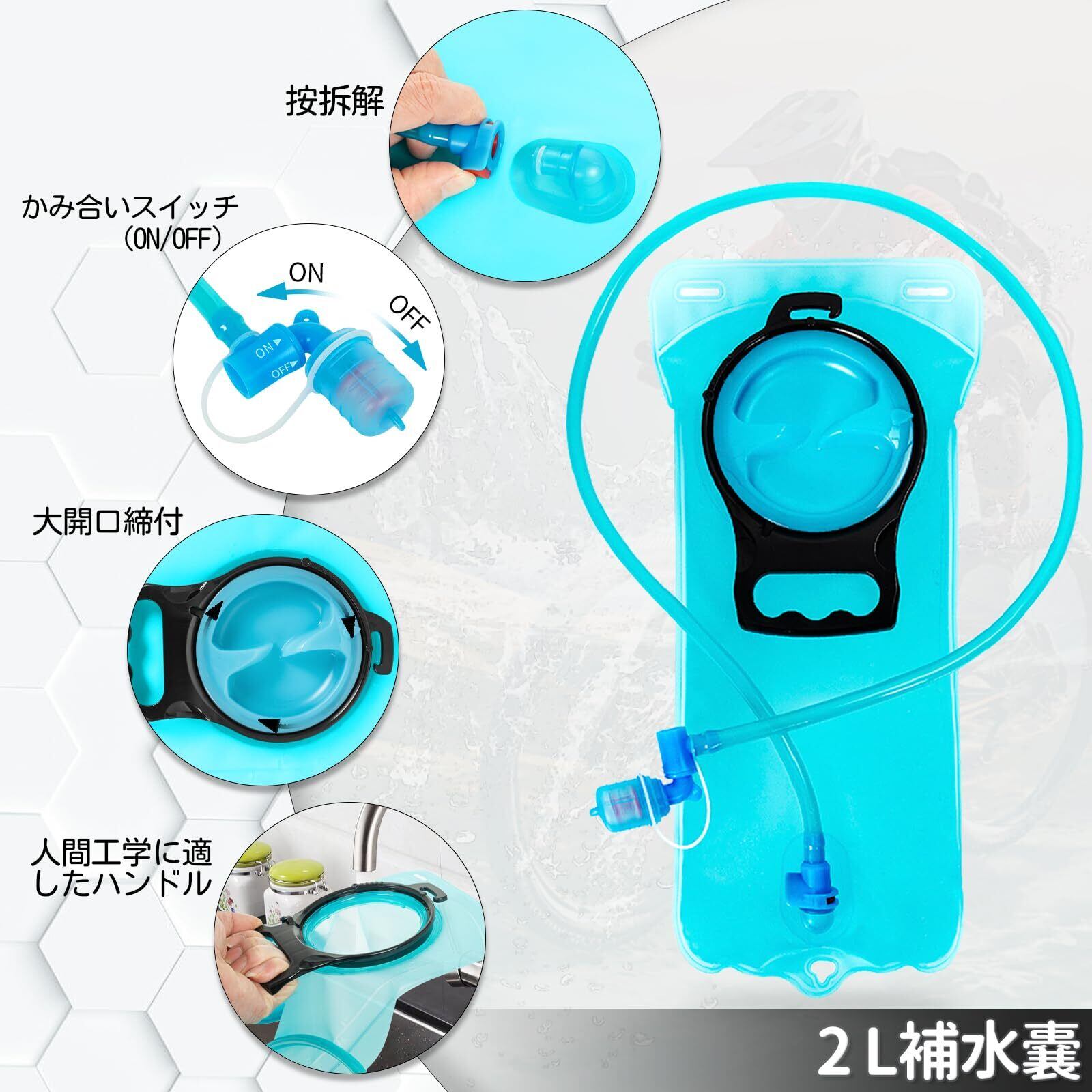 【ウォーターバッグシステム】バックパックには2L/70オンスの漏れ防止ウォーターバッグが装備されており、アウトドア活動中に簡単に水分補給でき、長距離ランニングでも喉の渇きを気にする必要がありません。ウォーターバッグにはスクリューキャップが装備されており、氷を入れて水温を冷たく保つのに便利です。環境に優しく防臭性のある素材で作られたウォーターバッグは、暑い天候でも何時間も水質を新鮮に保ち、いつでもきれいな水を飲むことができます。