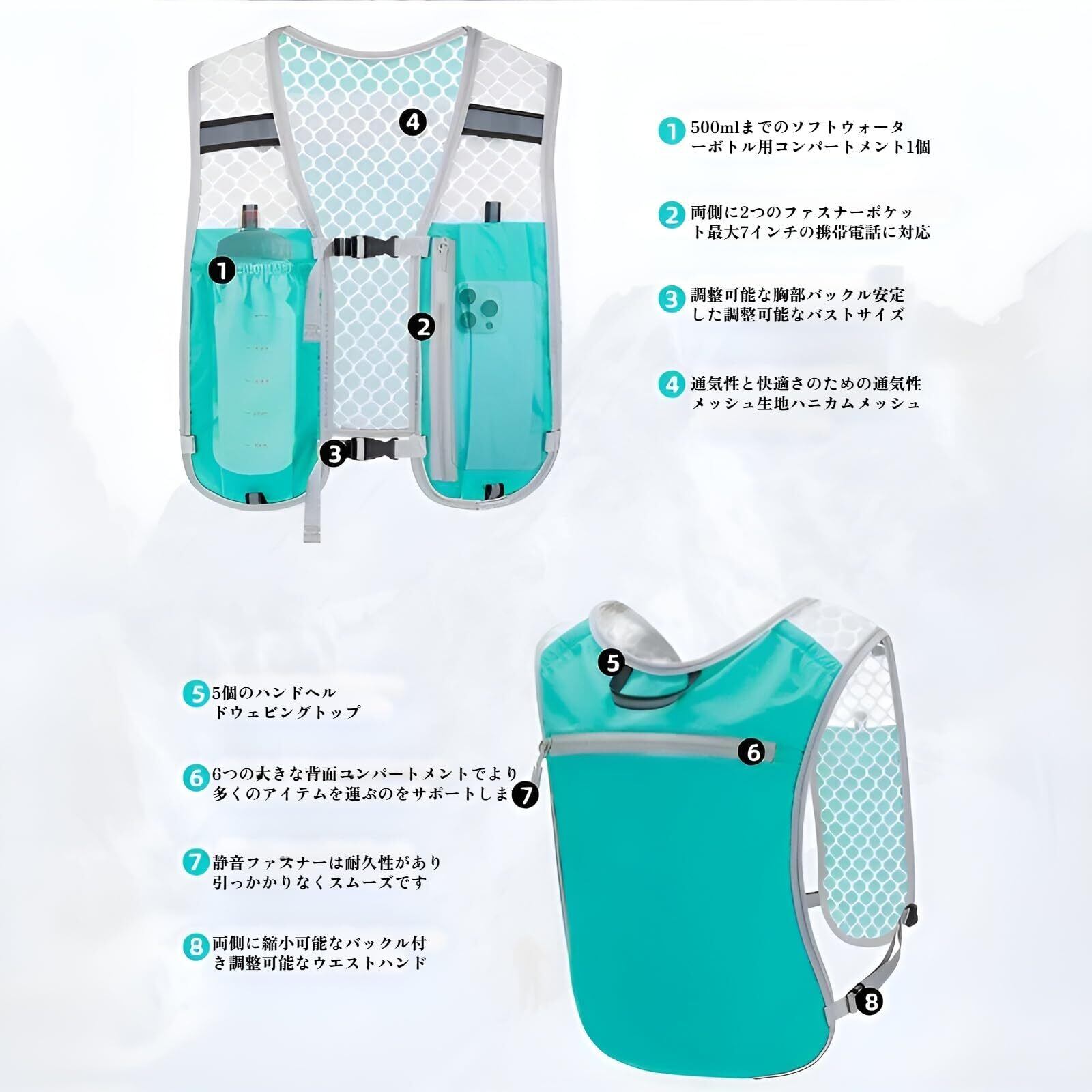 【新春セール】ランニング リュック 超軽量 125g トレイル ザック ハイドレーションバッグ 自転車レース/登山/マラソン対応 ランニングベストトレイルパック 通気防水 反射テープ 揺れない 多機能収納 男女/子供兼用