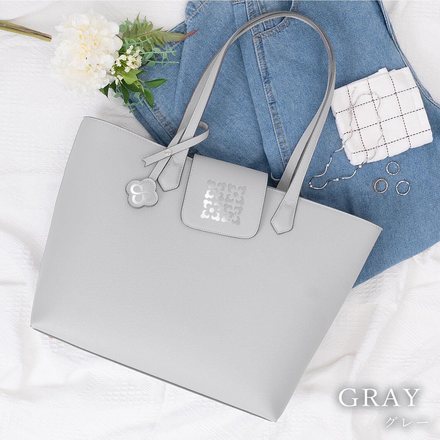 ■合皮トートバッグ 上品でシンプルなデザインの合皮トートバッグです。 マリクレールのシンボルマークのチャームが付いており、更に隠しマグホック付きなので、安心して使用できます。 B4サイズの書類やファイル、ノートパソコンやタブレット、雑誌や財布、化粧ポーチなどの日常の必需品を収納できます。