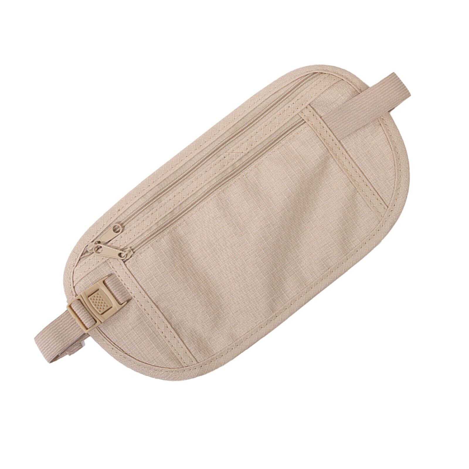 海外旅行スリ対策グッズ 薄型見えないシークレットポーチ パスポート専用ウエストポーチ 盗難防止貴重品収納腰ポーチ(カーキ/オフホワイト)