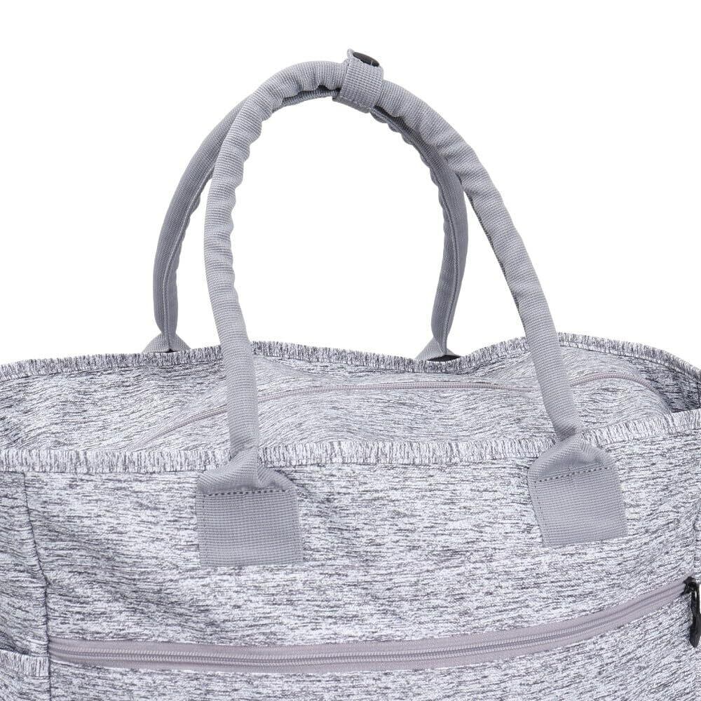 フロントに小さなロゴ刺繍が入った大容量サイズのトートバッグ。背面のシューズ収納、ボトルポケットなど機能性に優れたデザイン。メイン収納には充実した小物ポケットを完備。軽量で耐久性のあるポリエステル素材を採用。