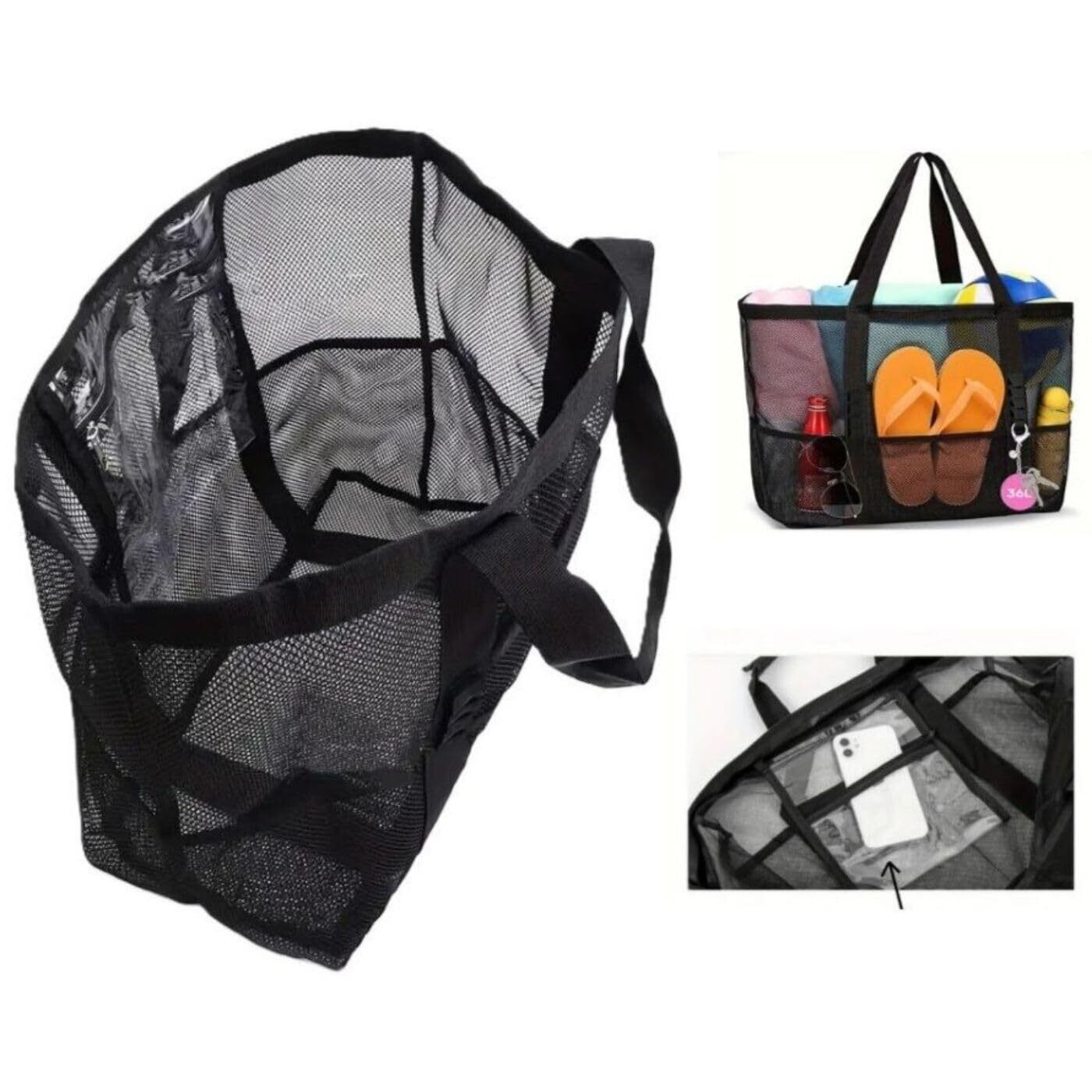 メッシュバッグ スパ ビーチ ヨガ サウナ 温泉 水泳 トートバッグ 砂浜 旅行 ポケット付き ストラップホール 折り畳み可能 バッグインバッグ 大容量 軽量