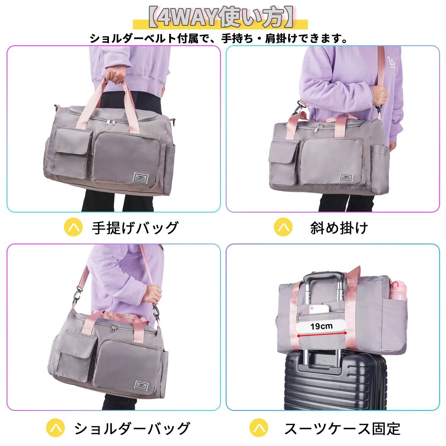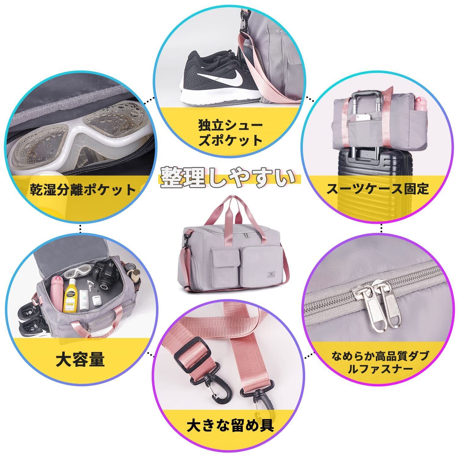 ボストンバッグ (乾湿分離ポケット大き目/37Lでも大容量/軽量/4way) 旅行バッグ 1泊 2泊 修学旅行 防災バッグ ゴルフ スポーツ ジムバック メンズ レディース 機内持ち込み キャリーオン トレーニングバッグ グレー+ピンク 21001