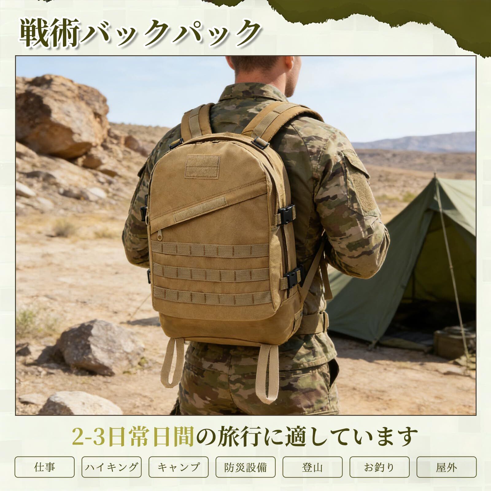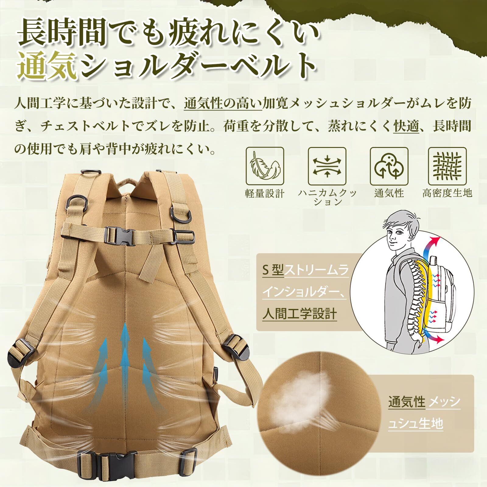 【2022最新】40L ミリタリー リュック タクティカルバッグ 登山リュック バックパック 大容量 防水 耐久性 耐磨耗 通気性 MOLLE対応 多機能 アウトドア キャンプ ハイキング トラベル 防災 軍用