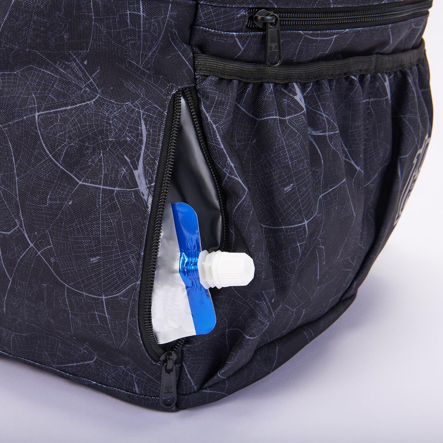 ボール収納・シューズ収納を備えた大容量のサッカー用バックパック。5号球に対応可能なボール収納はフラップ下へ、シューズ収納は側面下部に配置。背面下部に保冷生地を採用した捕食ポケットを掲載し、ゼリー飲料や軽食の収納が可能。