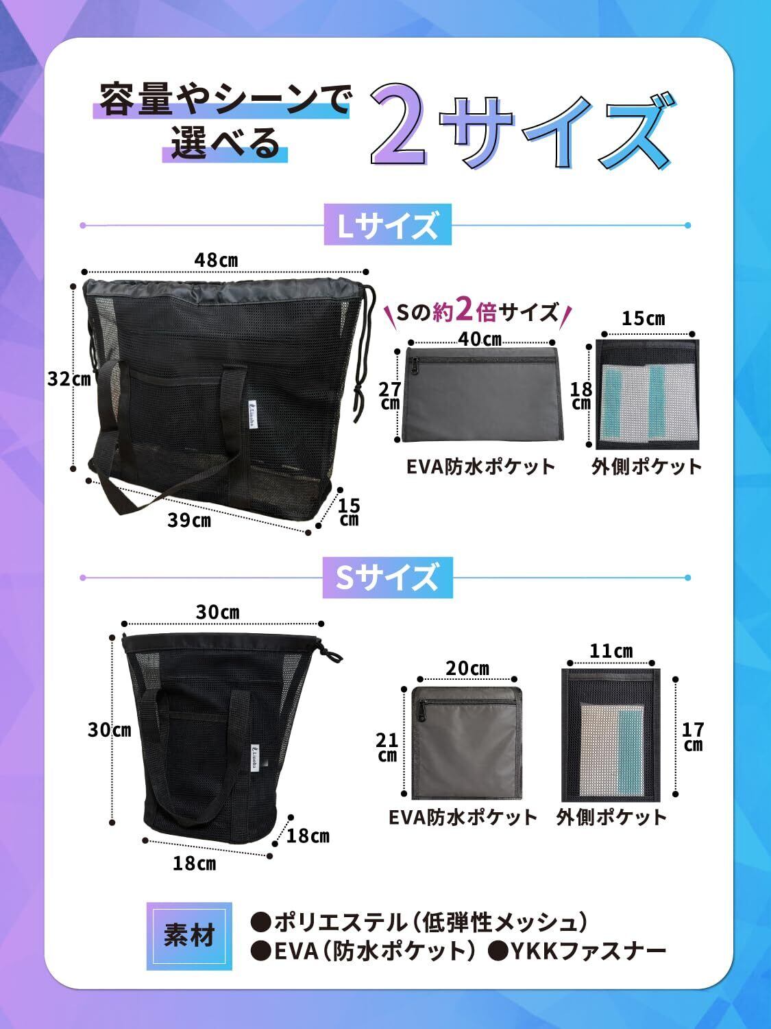 【軽量設計で持ち運びやすい】 本体は軽量メッシュ素材を使用しているため、荷物を入れても重くなりすぎず持ち運びが快適です。スパ・温泉・サウナ・ジム・プール・ビーチ・アウトドアなど、さまざまなシーンで活躍します。